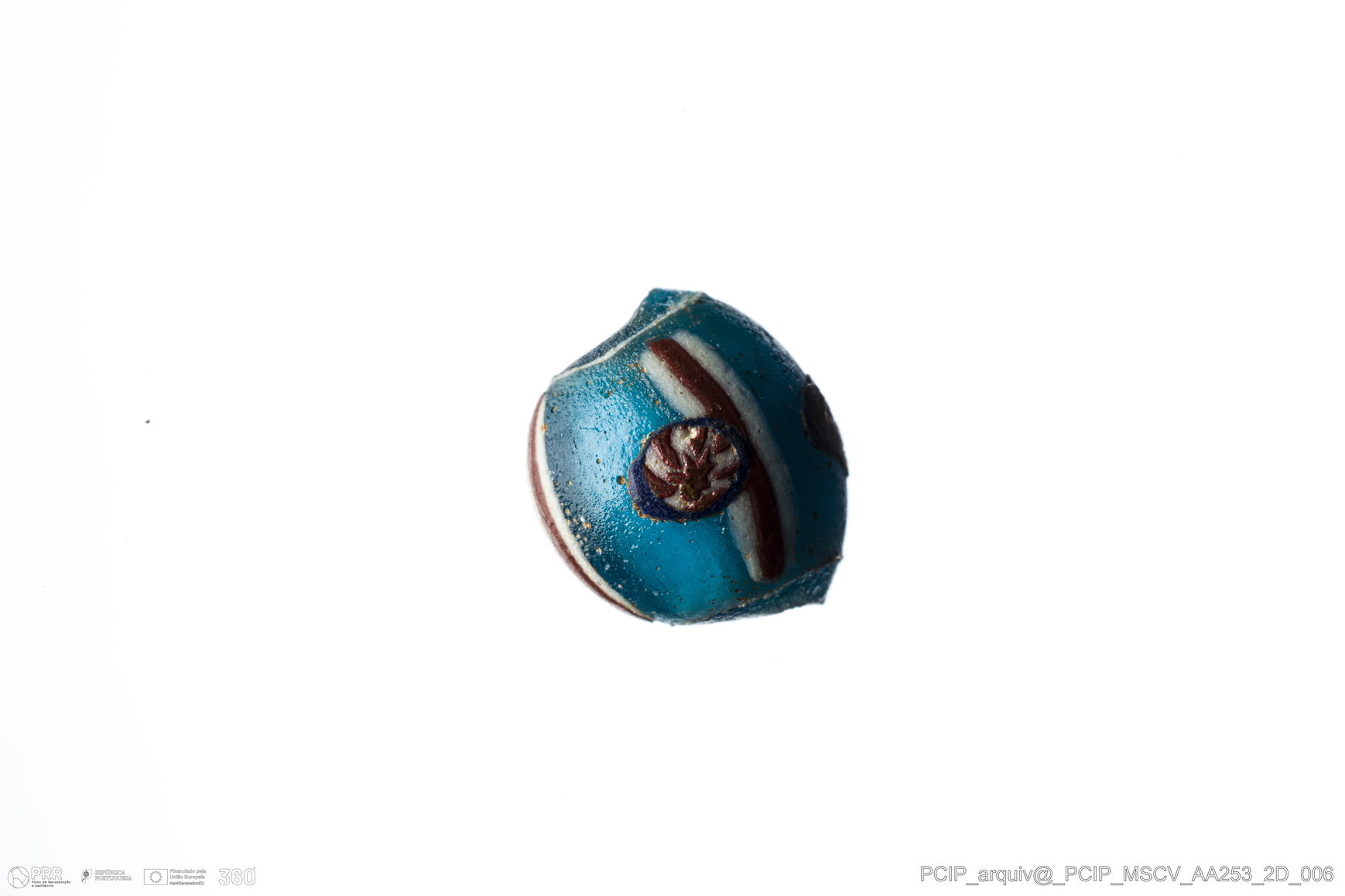Matéria/Técnica: Vidro; Cronologia: Século XVI-Século XVII; Autoria: Desconhecida; Dimensões: Altura: 9,5mm; Diâmetro: 8mm.