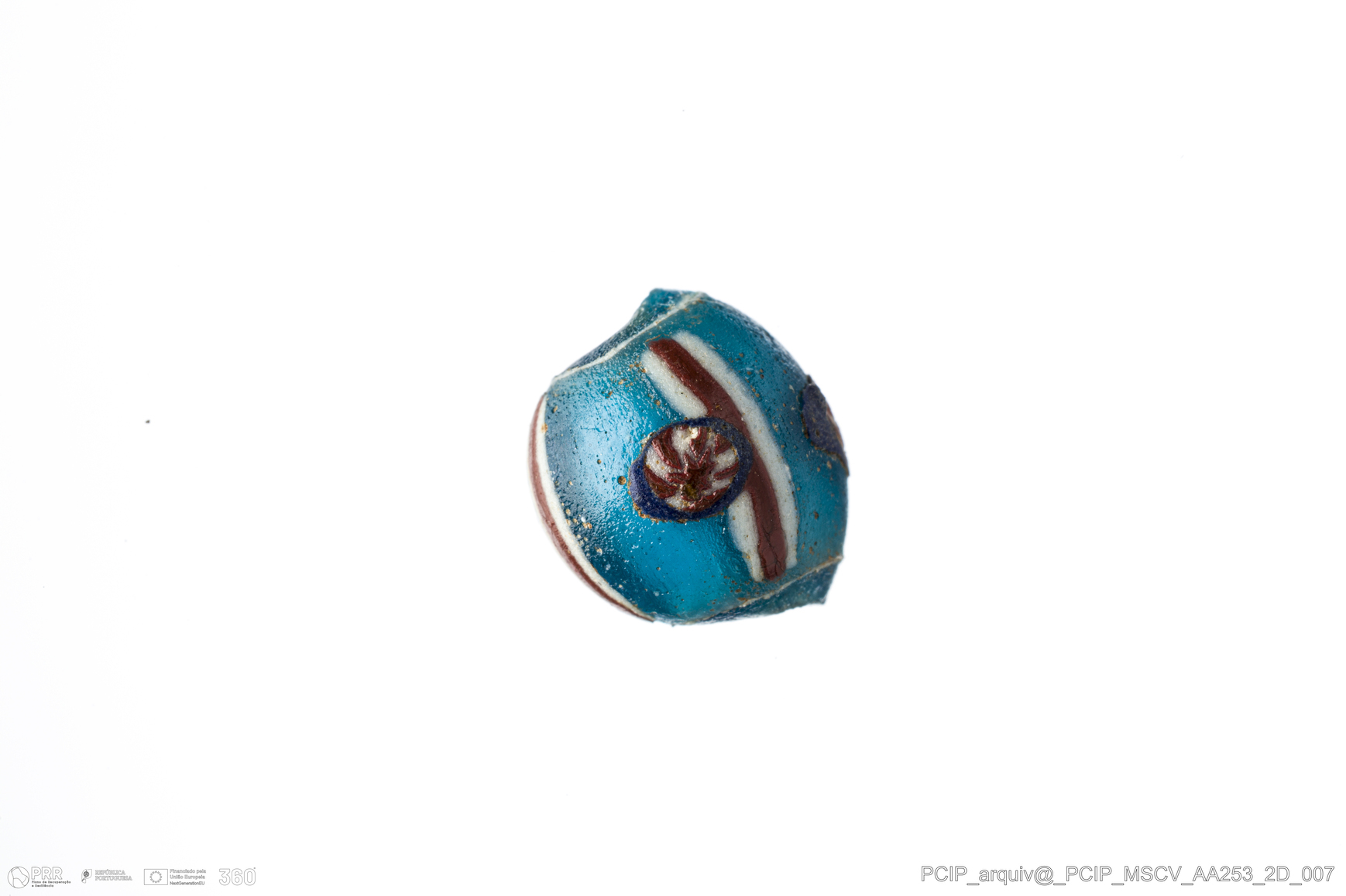 Matéria/Técnica: Vidro; Cronologia: Século XVI-Século XVII; Autoria: Desconhecida; Dimensões: Altura: 9,5mm; Diâmetro: 8mm.