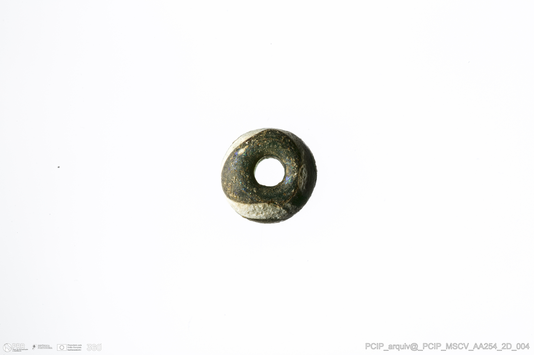 Matéria/Técnica: Vidro; Cronologia: Século XVI-Século XVII; Autoria: Desconhecida; Dimensões: Altura: 4,5mm; Diâmetro: 6,5mm.