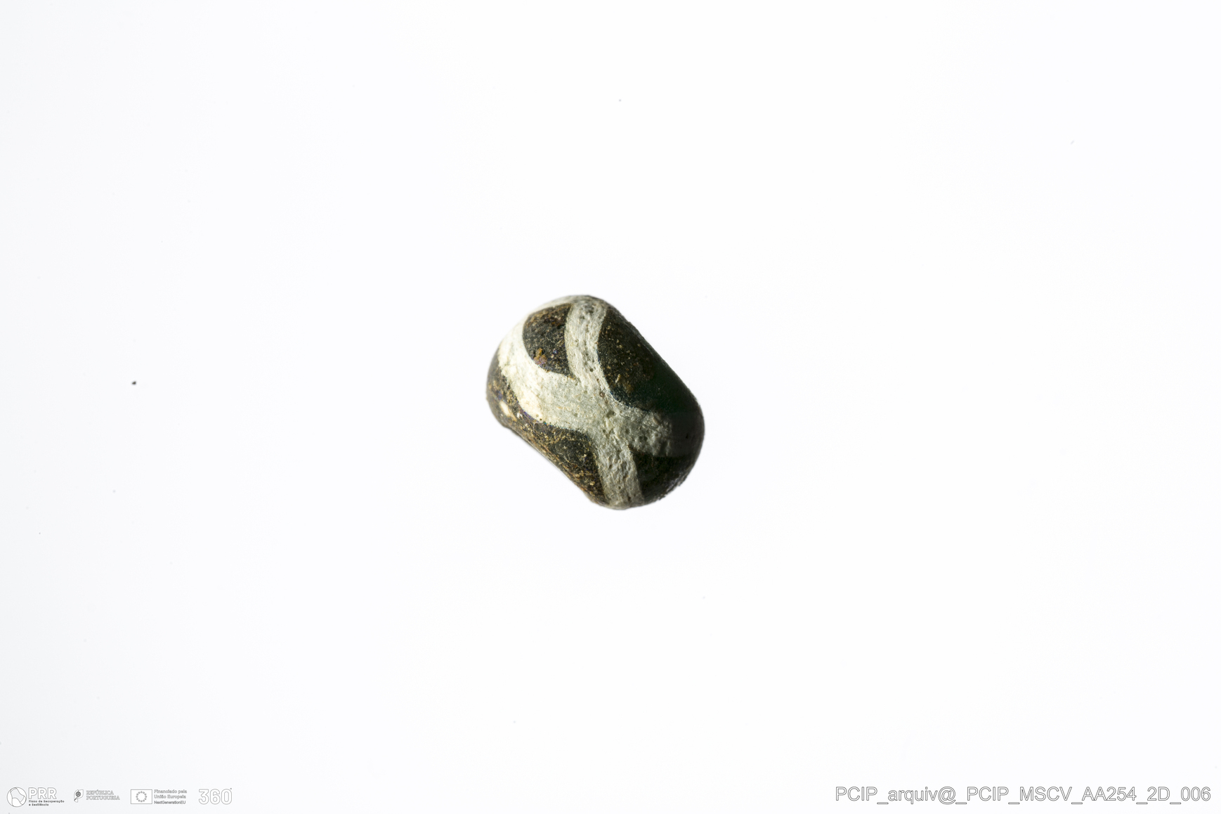 Matéria/Técnica: Vidro; Cronologia: Século XVI-Século XVII; Autoria: Desconhecida; Dimensões: Altura: 4,5mm; Diâmetro: 6,5mm.