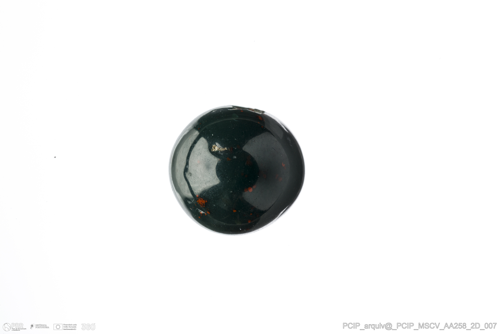 Matéria/Técnica: Vidro; Cronologia: Século XVI-Século XVII; Autoria: Desconhecida; Dimensões: Diâmetro: 10mm.