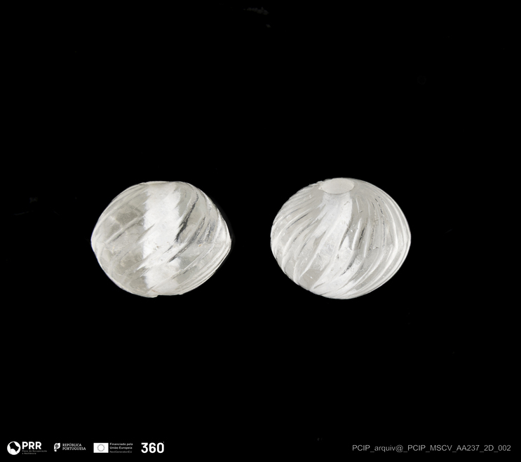 Matéria/Técnica: Cristal de rocha; Cronologia: Século XVI-Século XVII; Autoria: Desconhecida; Dimensões: Comprimento: 7mm; Diâmetro: 8,5mm.