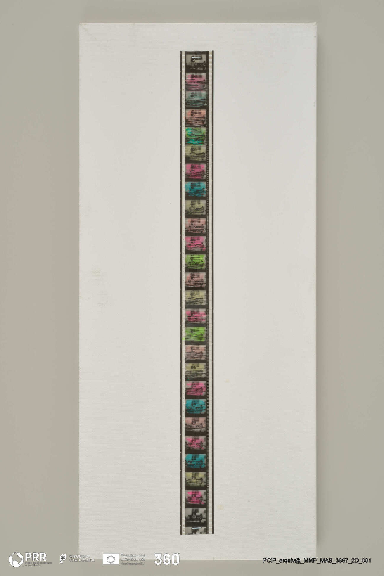 Matéria/Técnica: Película exposta, riscada e agrafada sobre tela; Cronologia: Desconhecida; Autoria: Pires, Manuel António; Dimensões: Desconhecidas.