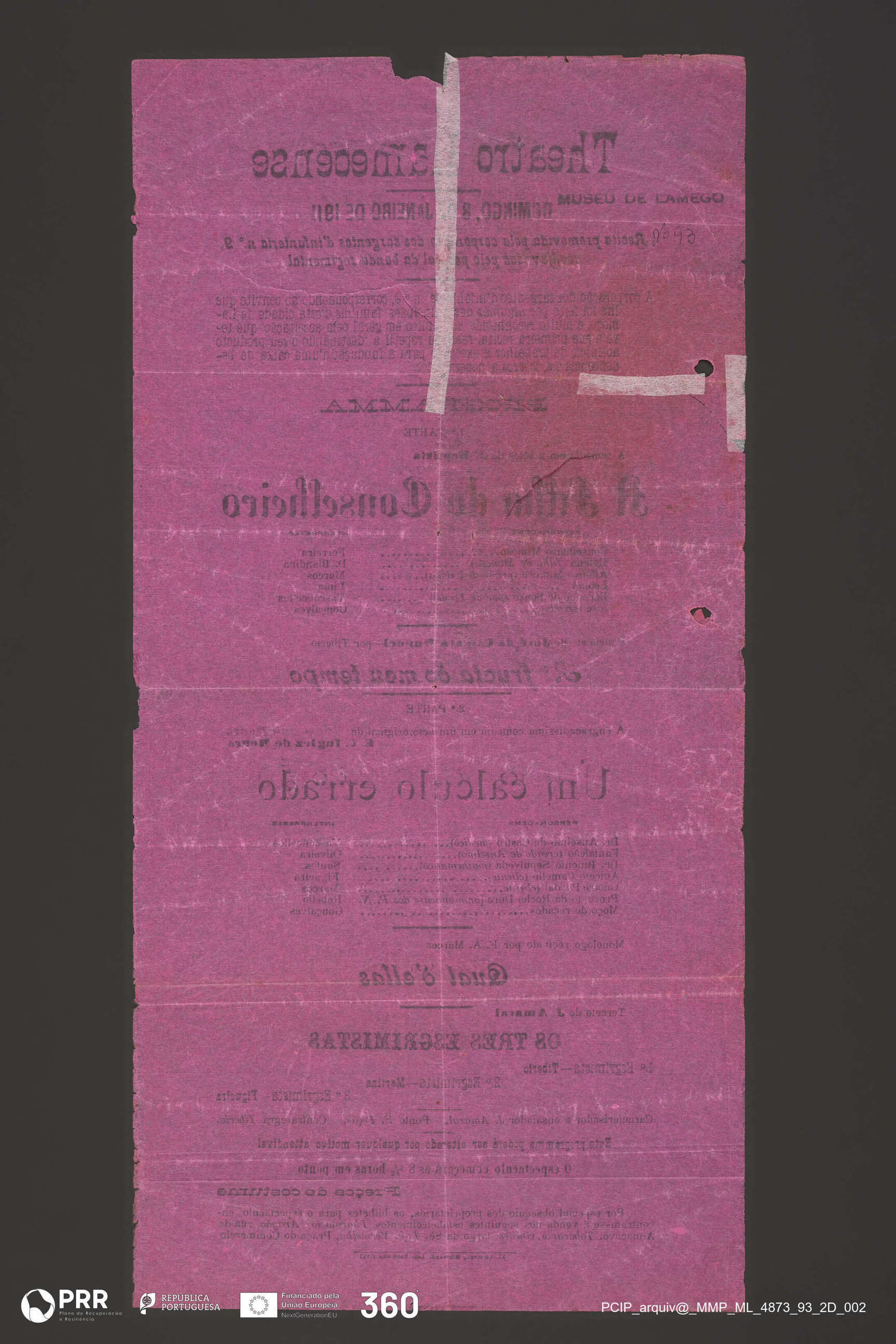 Matéria/Técnica: Impressão; Cronologia: 1911; Autoria: Desconhecida; Dimensões (cm): Altura: 41 x Comprimento: 20,2.