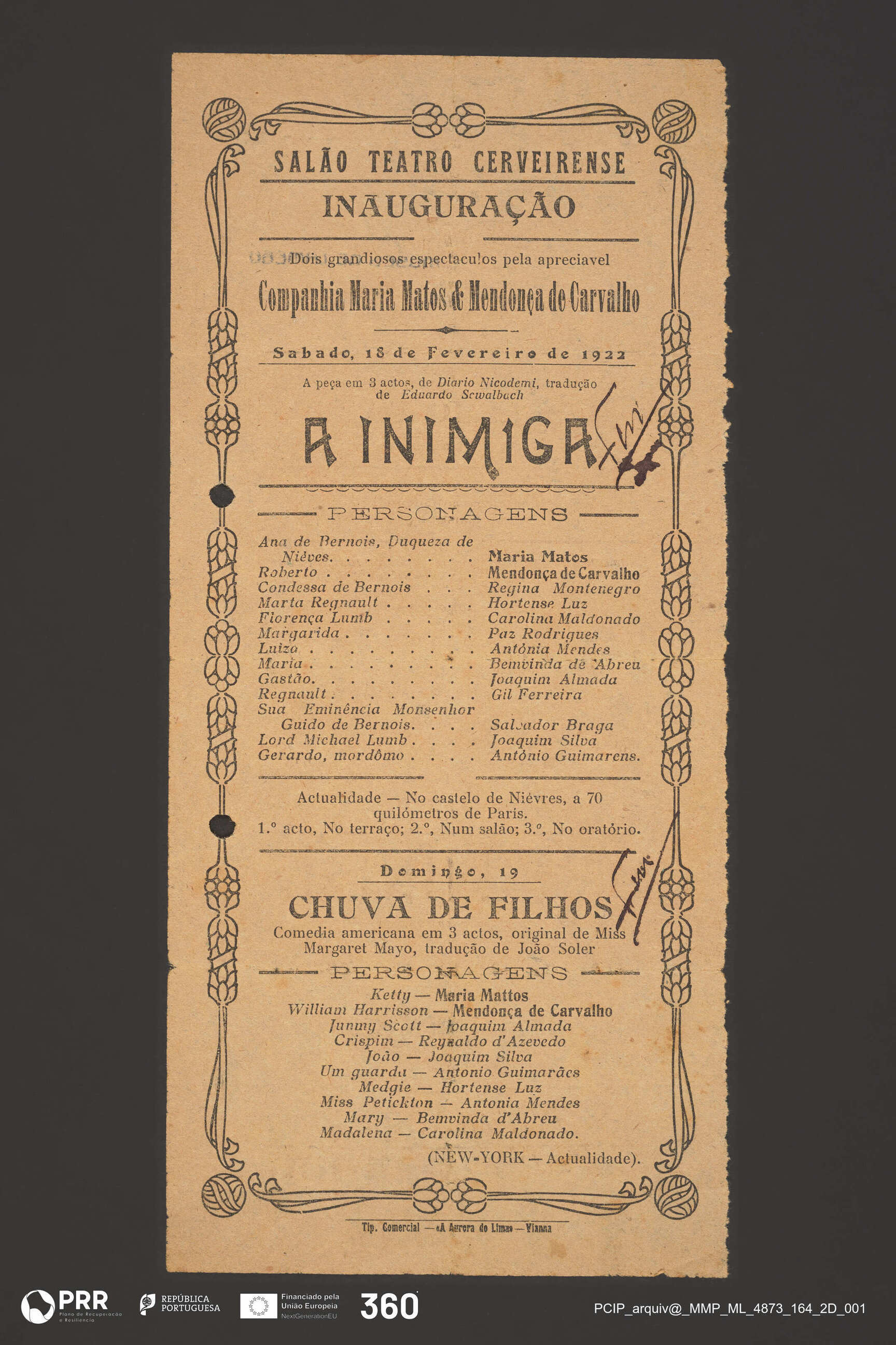 Matéria/Técnica: Impressão; Cronologia: 1922; Autoria: Desconhecida; Dimensões (cm): Altura: 29,8 x Comprimento: 13,7.