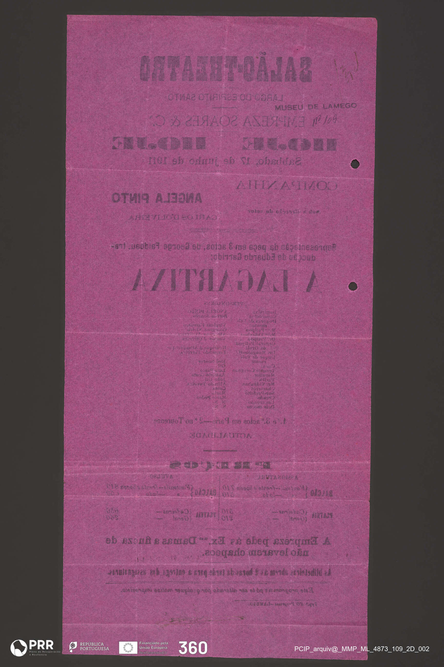 Matéria/Técnica: Impressão; Cronologia: 1911; Autoria: Desconhecida; Dimensões (cm): Altura: 42,4 x Comprimento: 20,4.