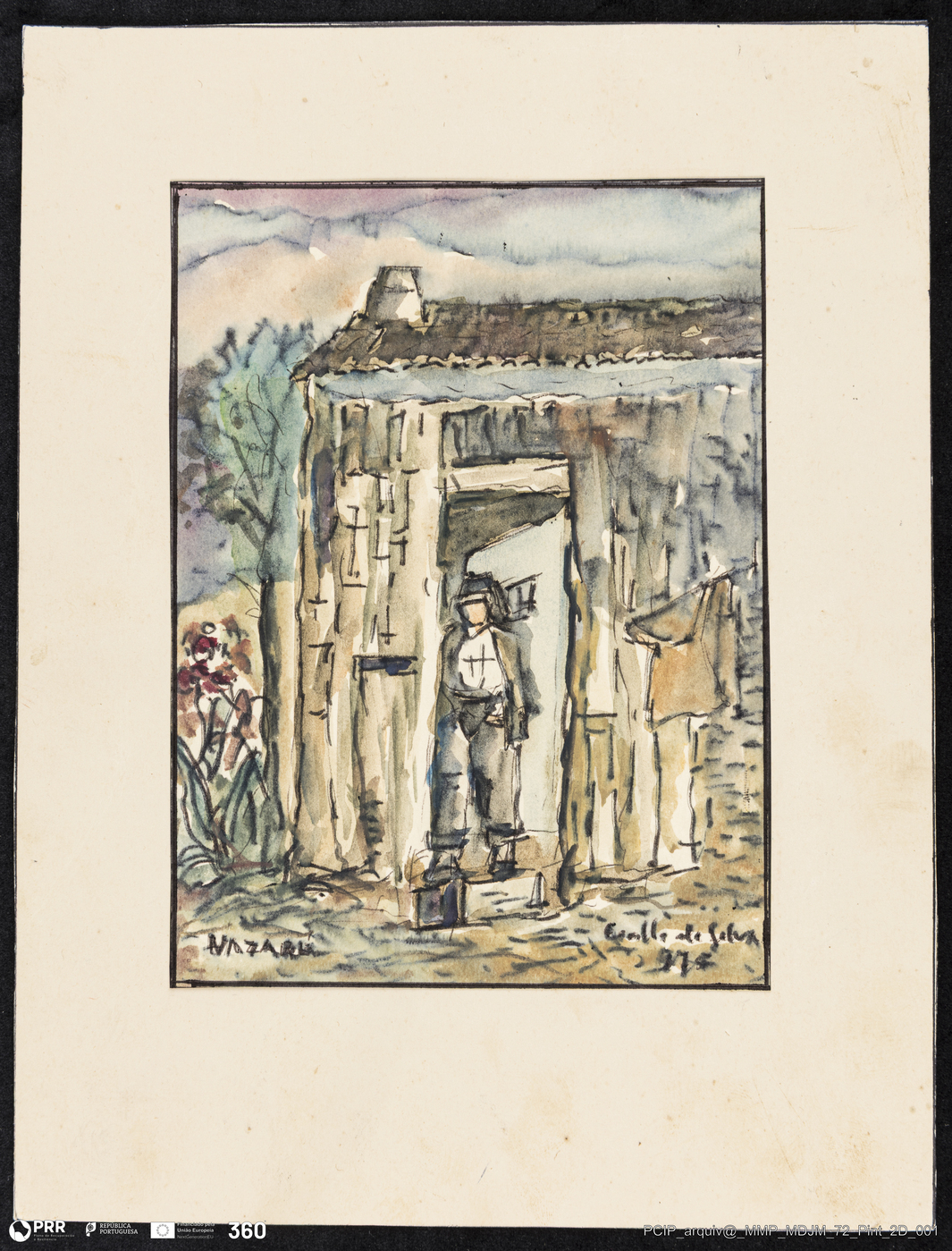 Matéria/Técnica: Aguarela sobre papel; Cronologia: 1976; Autoria: Manuel Coelho da Silva; Dimensões: Altura: 54 cm x Largura: 38,5 cm.