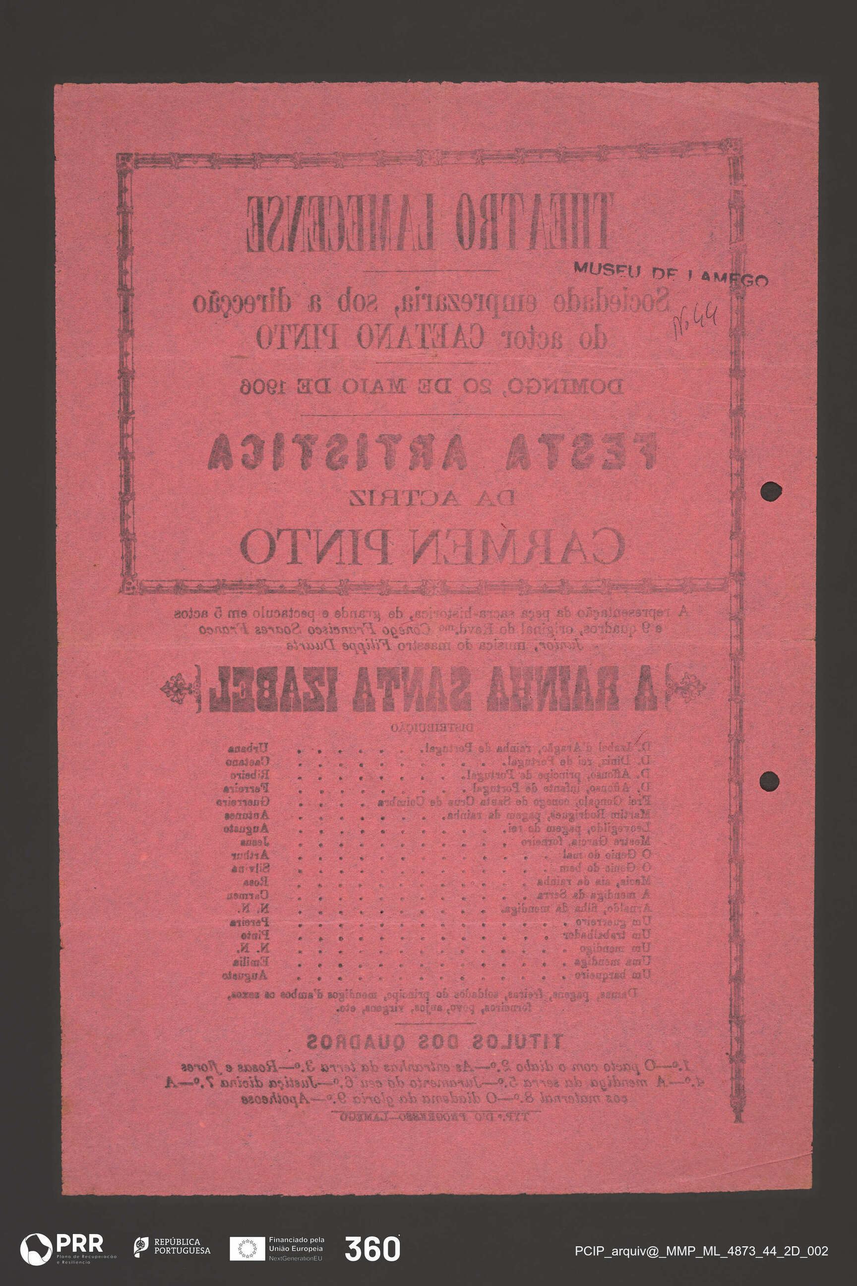 Matéria/Técnica: Impressão; Cronologia: 1906; Autoria: Desconhecida; Dimensões (cm): Altura: 31,4 x Comprimento: 21,1.