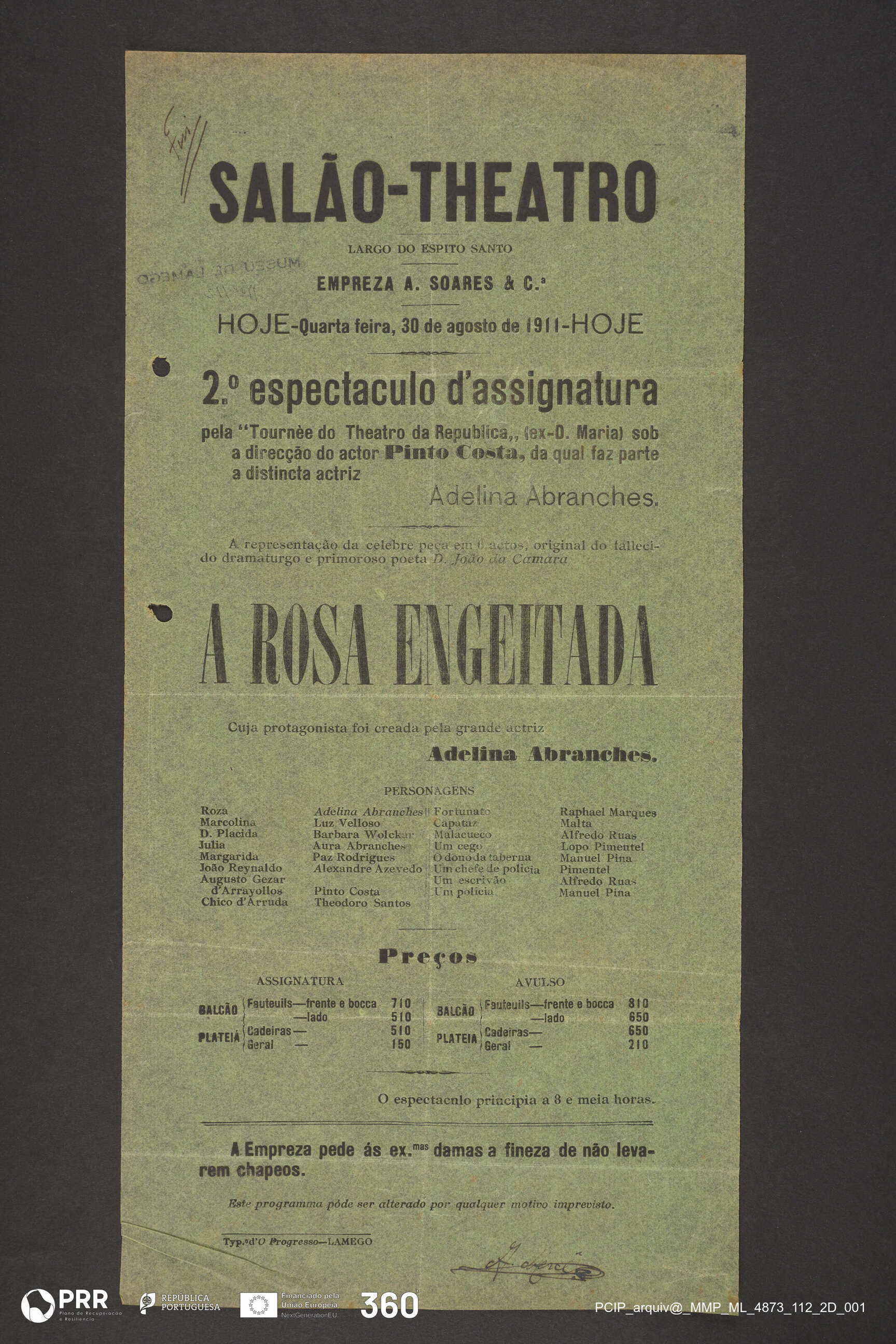 Matéria/Técnica: Impressão; Cronologia: 1911; Autoria: Desconhecida; Dimensões (cm): Altura: 41,3 x Comprimento: 20,4.