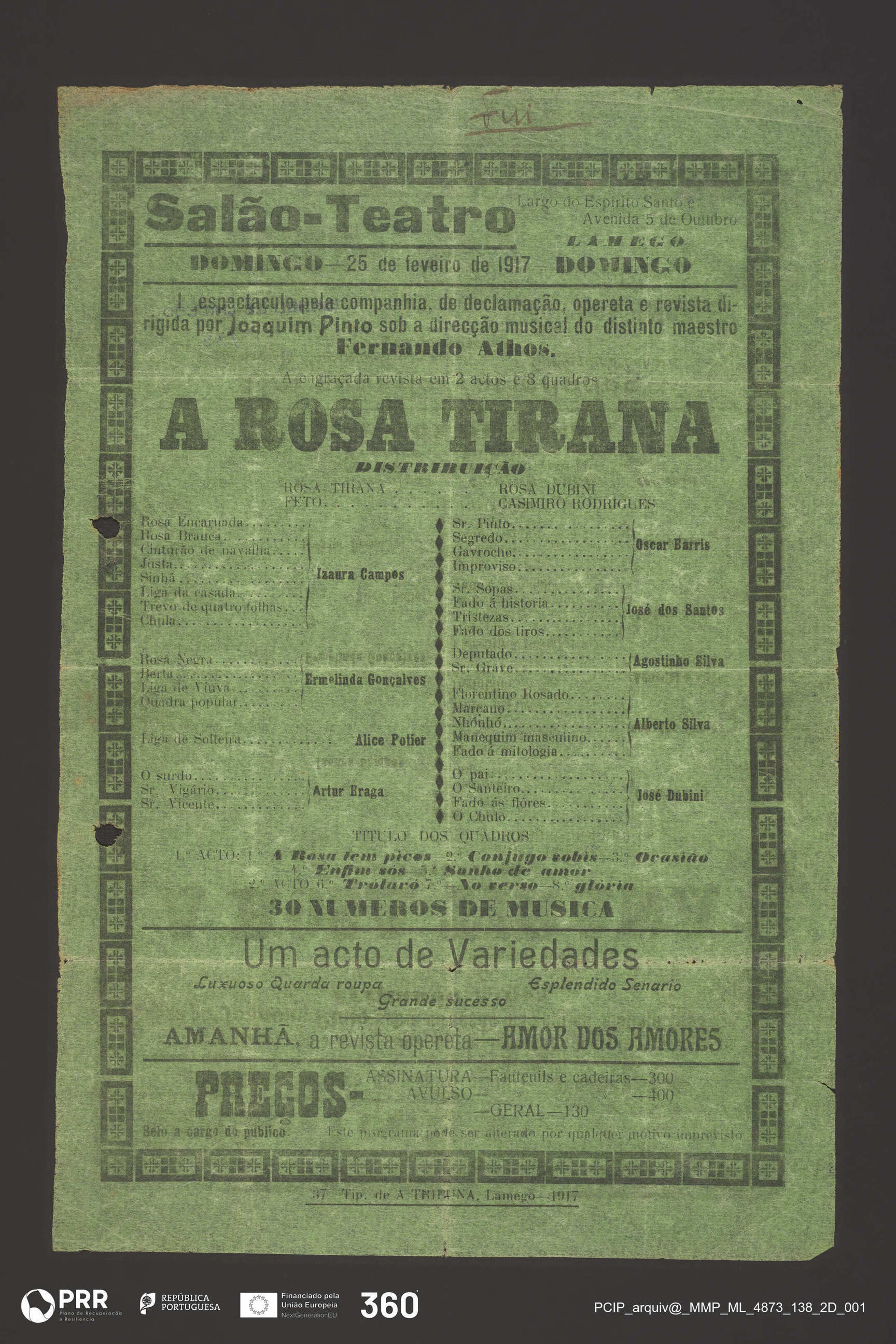 Matéria/Técnica: Impressão; Cronologia: 1917; Autoria: Desconhecida; Dimensões (cm): Altura: 30,9 x Comprimento: 20,6.