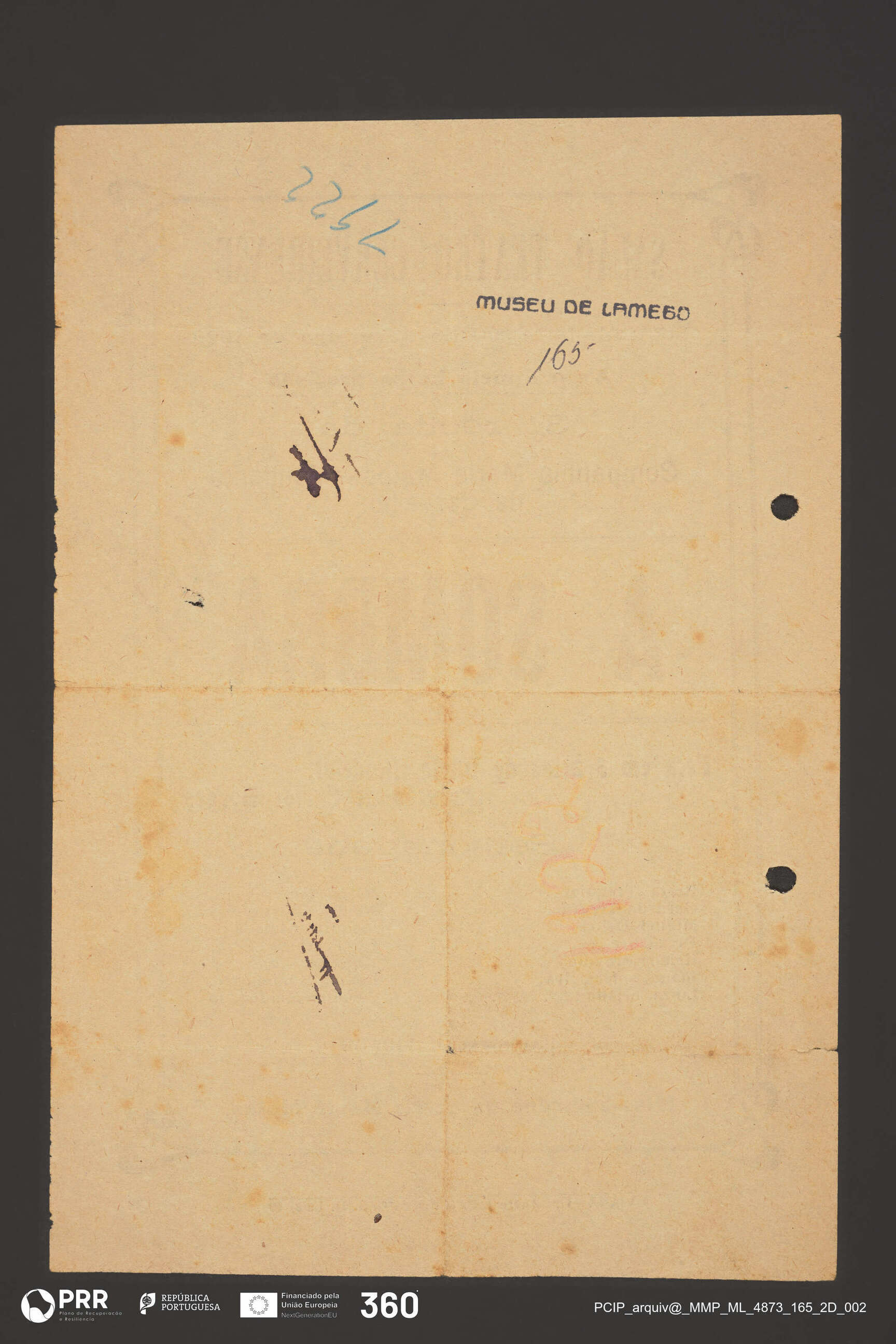 Matéria/Técnica: Impressão; Cronologia: 1922; Autoria: Desconhecida; Dimensões (cm): Altura: 25,4 x Comprimento: 17,1.