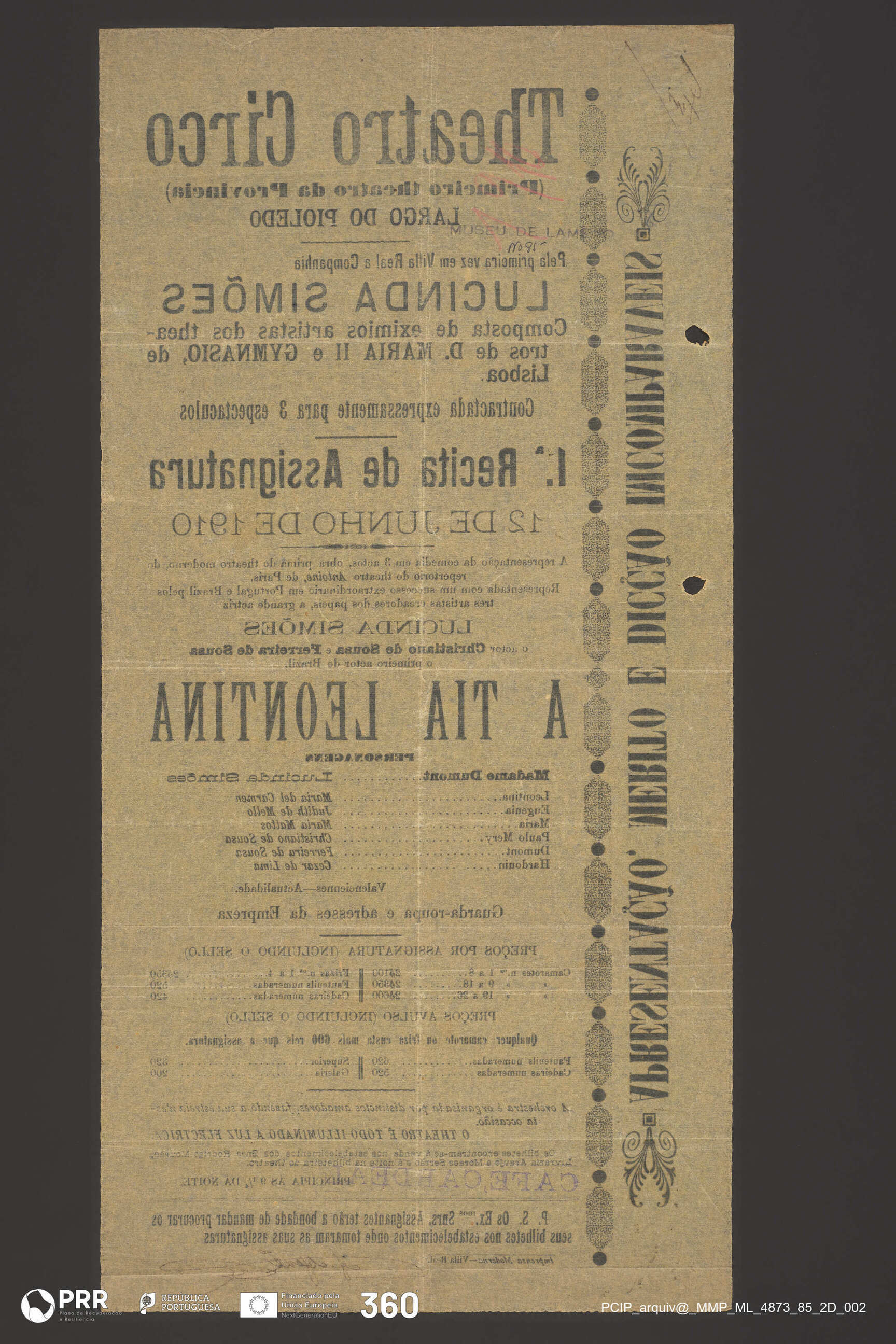 Matéria/Técnica: Impressão; Cronologia: 1910; Autoria: Desconhecida; Dimensões (cm): Altura: 42,5 x Comprimento: 20,8.