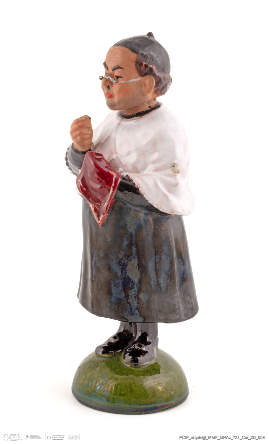 Matéria/Técnica: Moldado e Modelado com vidrados polícromos; Cronologia: Séculos XIX - XX; Autoria: Desconhecida; Dimensões: Altura: 26 cm x Diâmetro: 8 cm.