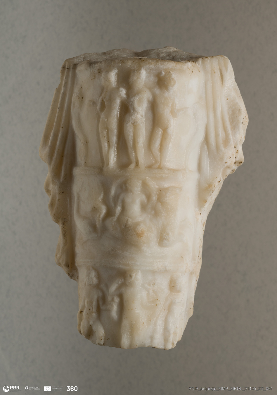 Matéria/Técnica: Mármore; Cronologia: Desconhecida; Autoria: Desconhecida; Dimensões: Comprimento: 12,10 cm; Largura: 8,40 cm.