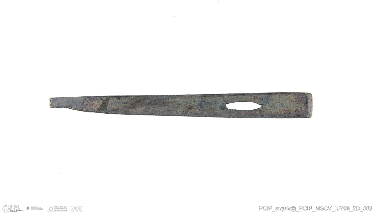 Matéria/Técnica: Liga de cobre ; Cronologia: Século XVII; Autoria: Desconhecida; Dimensões: Altura: 49,5mm; Largura: 5mm.