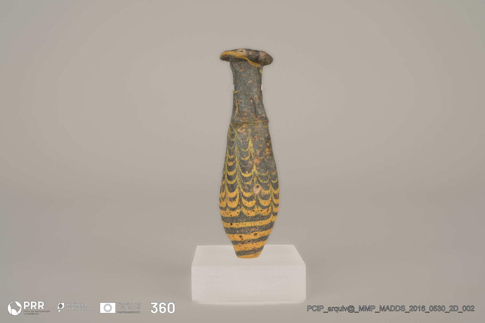 Matéria/Técnica: Pasta Vítrea Opaca; Cronologia: Século III a.C; Autoria: Desconhecida; Dimensões (cm): 12 x 4 x 4.
