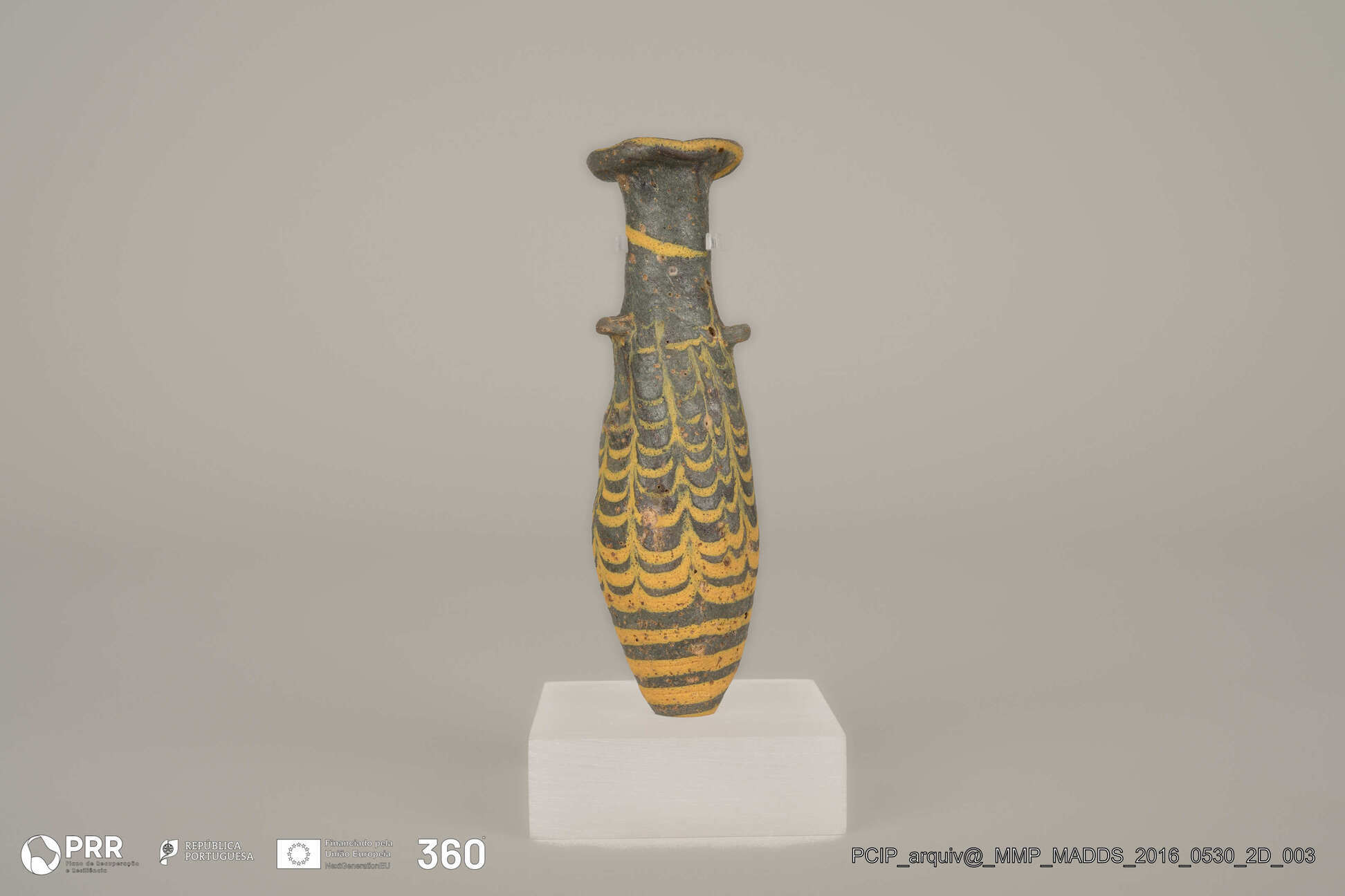 Matéria/Técnica: Pasta Vítrea Opaca; Cronologia: Século III a.C; Autoria: Desconhecida; Dimensões (cm): 12 x 4 x 4.
