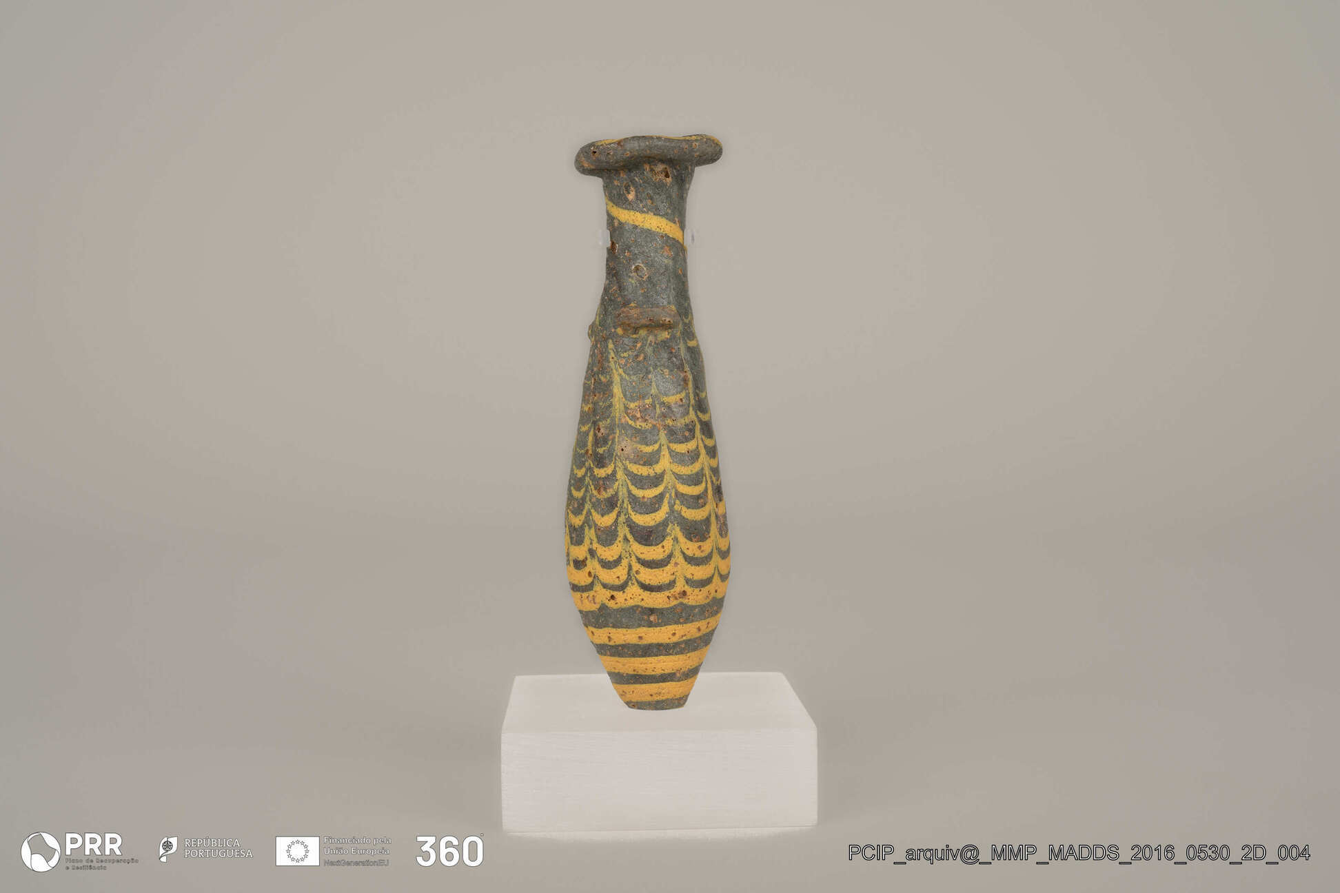 Matéria/Técnica: Pasta Vítrea Opaca; Cronologia: Século III a.C; Autoria: Desconhecida; Dimensões (cm): 12 x 4 x 4.