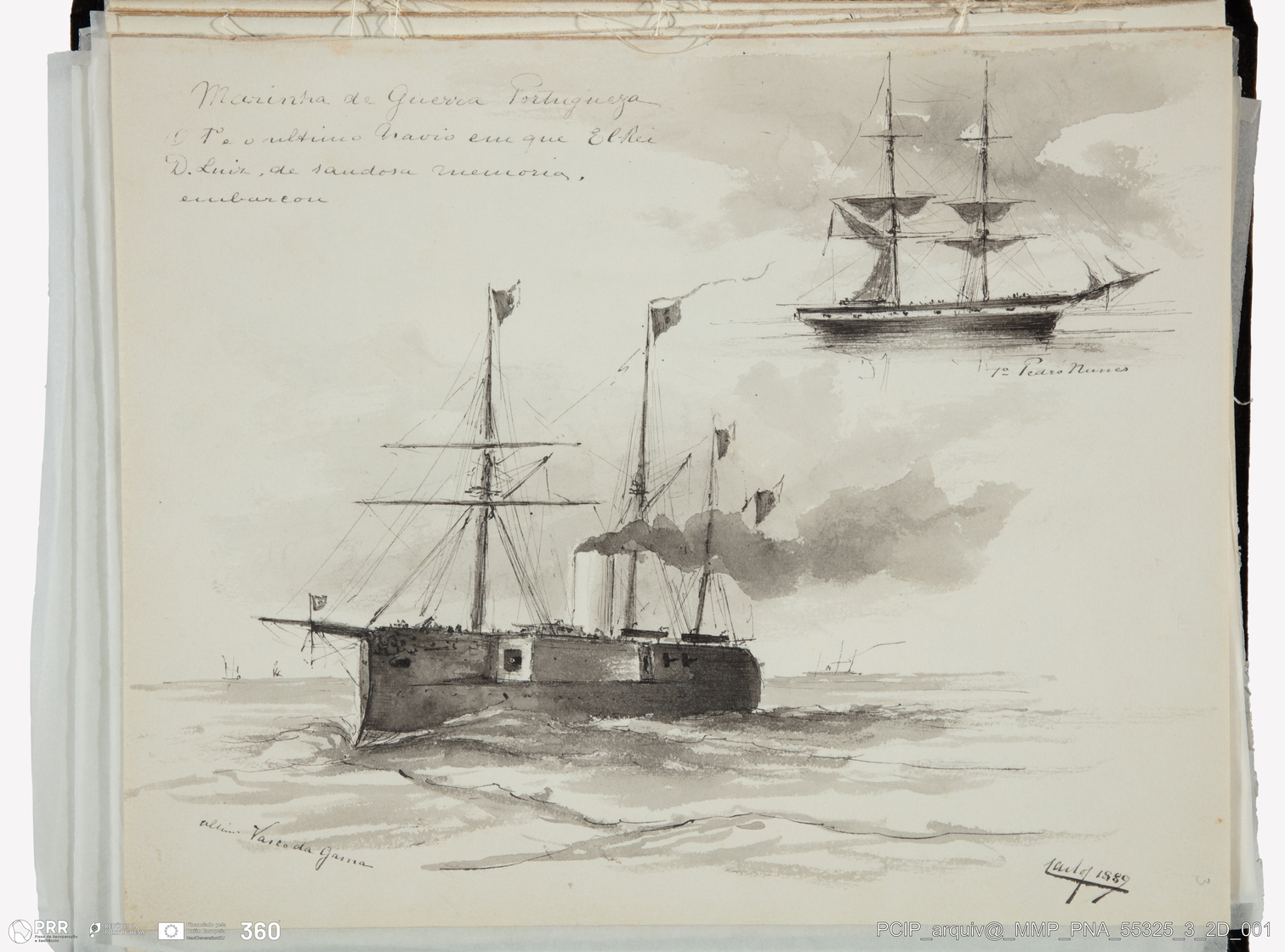 Matéria/Técnica: Aguarela e tinta da China sopre papel; Cronologia: 1889; Autoria: Rei D. Carlos; Dimensões: Altura: 31 cm x Largura: 23,5 cm.