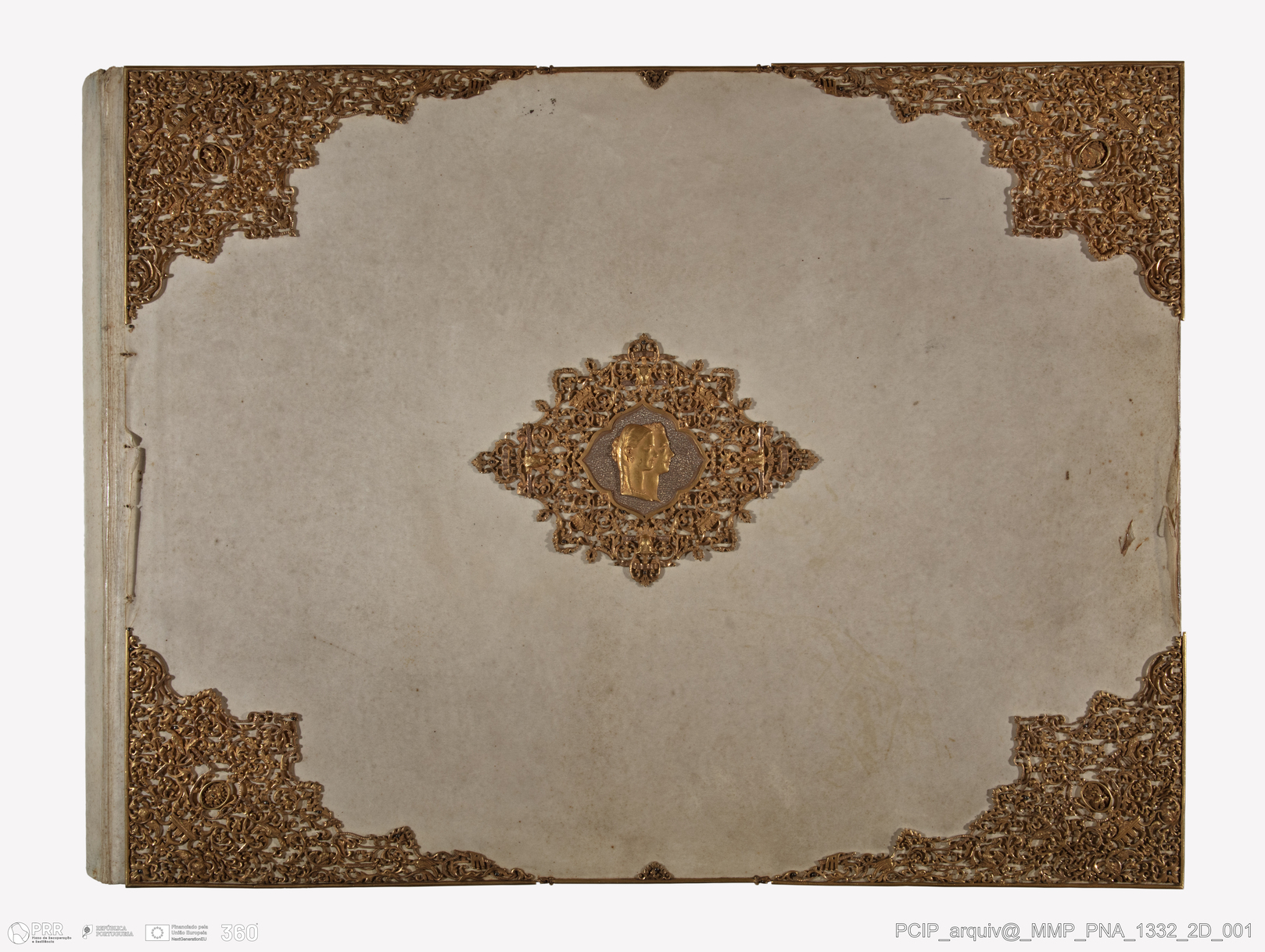 Matéria/Técnica: Encadernação a pergaminho com aplicação de decoração em metal dourado; folhas de guarda forradas a tecido moiré de seda azul; aguarela.; Cronologia: 1862; Autoria: Allason, Ernesto; Beccaria, cavaliere Angelo; Biscarra, cavaliere Carlo Felice; Bisi, Luigi; Bossoli, cavaliere Carlo; Bossoli, Edoardo; Caffi, Cavaliéri Ipolito (1809-1866); Camino, cavaliere Giuseppe; Cerruti, cavaliere Felice; Corsi, conte Giacinto; Fe; Dimensões: Altura: 45 cm x Largura: 61 cm x Profundidade: 6,2 cm.