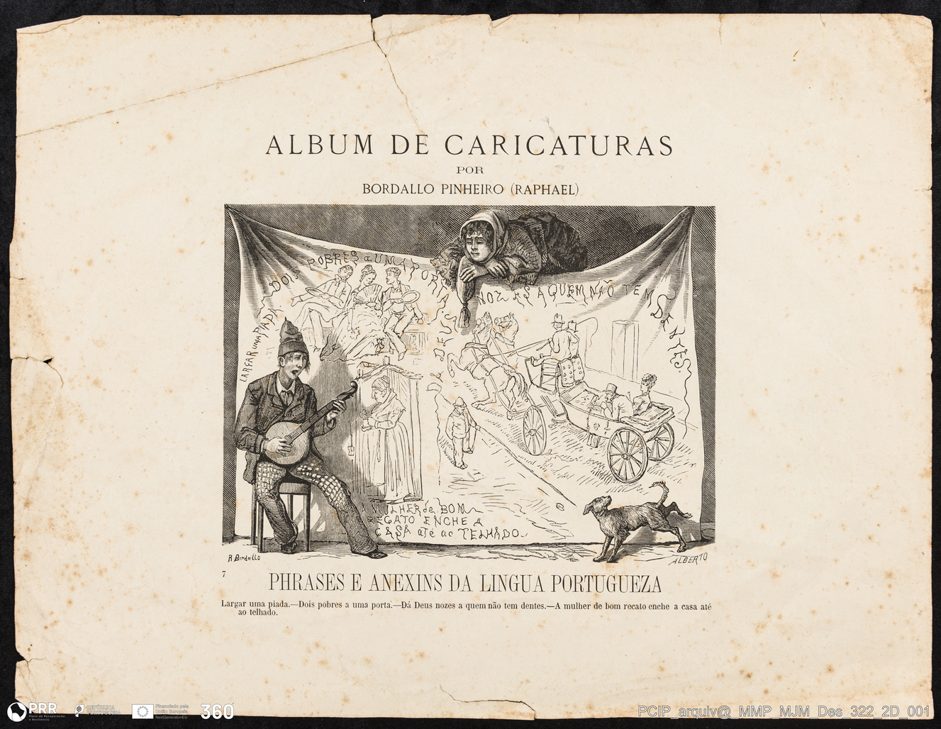 Documento simples. MJM_Des_322_2D_001 - Album de Caricaturas por Bordallo Pinheiro (Raphael) - Phrases e Anexins da Lingua Portugueza