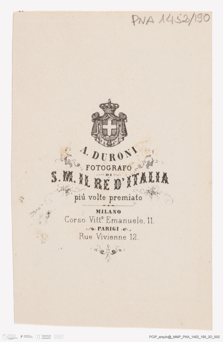 Documento simples. PNA_1452_190_2D_002 - Álbum fotográfico - Álbum de fotografias com retratos de familiares da rainha D. Maria Pia