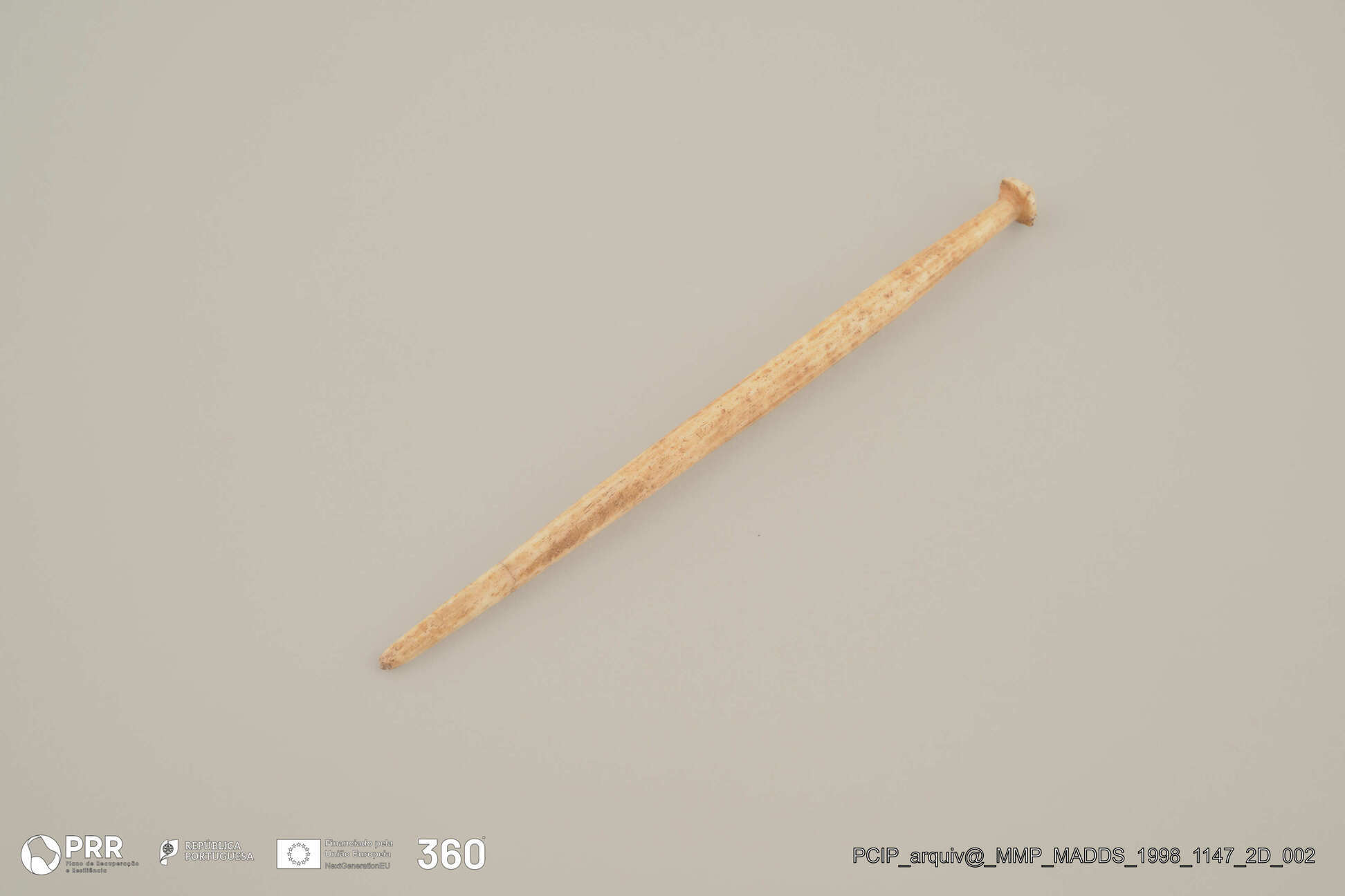 Matéria/Técnica: Marfim; Cronologia: Romano; Autoria: Desconhecida; Dimensões (cm): 9,3 x 0,6 x 0,5.