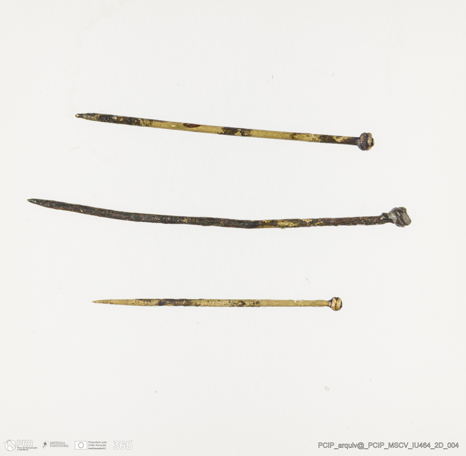 Matéria/Técnica: Liga de cobre; Cronologia: Século XVII; Autoria: Desconhecida; Dimensões: Medidas alfinete médio: Altura: 31mm; Diâmetro da cabeça: 2mm.