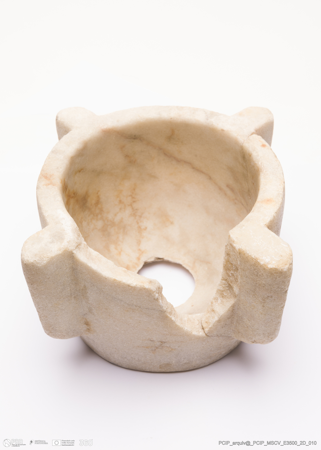Matéria/Técnica: Pedra; Cronologia: Século XVII; Autoria: Desconhecida; Dimensões: Altura: 125mm; Largura: 230mm; Diâmetro: 178mm; Diâmetro base: 152mm.