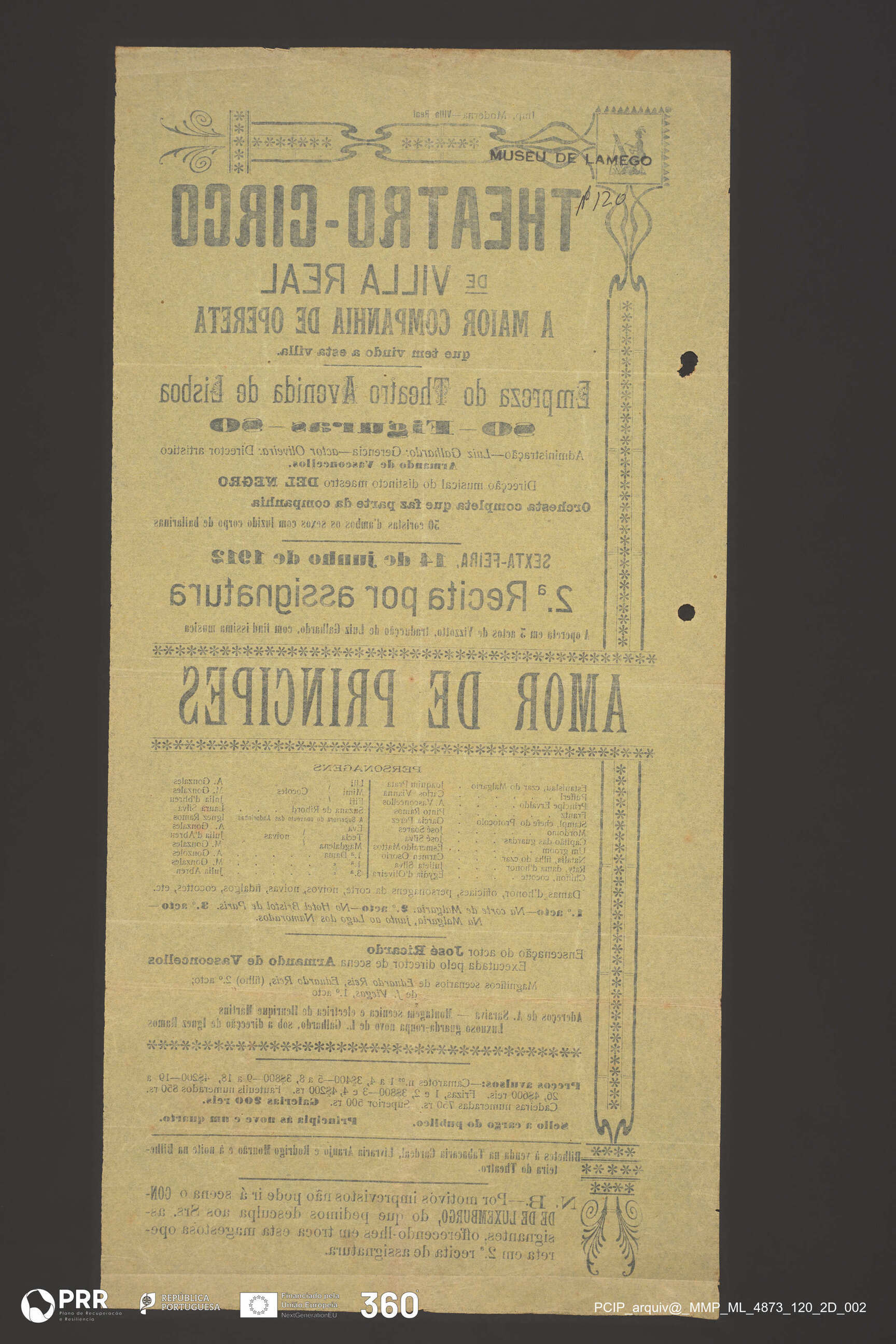 Matéria/Técnica: Impressão; Cronologia: 1912; Autoria: Desconhecida; Dimensões (cm): Altura: 42,3 x Comprimento: 20,6.