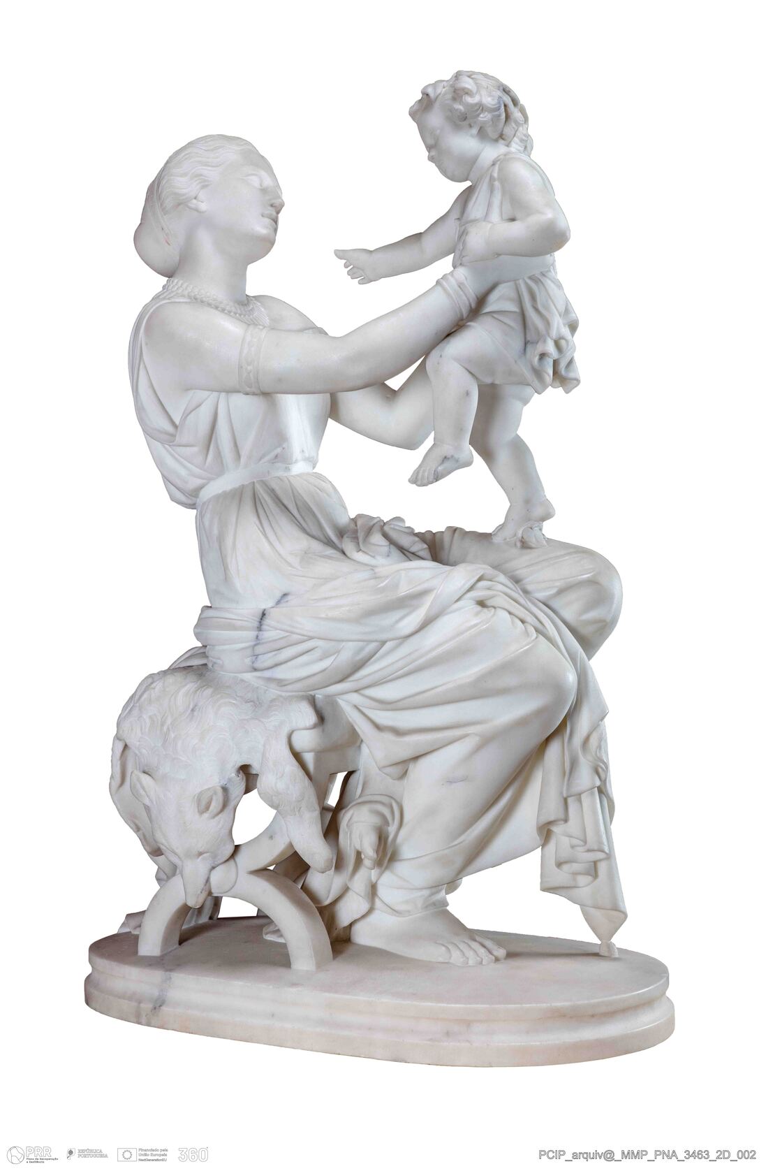 Matéria/Técnica: Mármore; Cronologia: 1859; Autoria: Calmels, Anatole Célestin; Dimensões (cm): Altura: 86; Largura: 61; Profundidade: 35.
