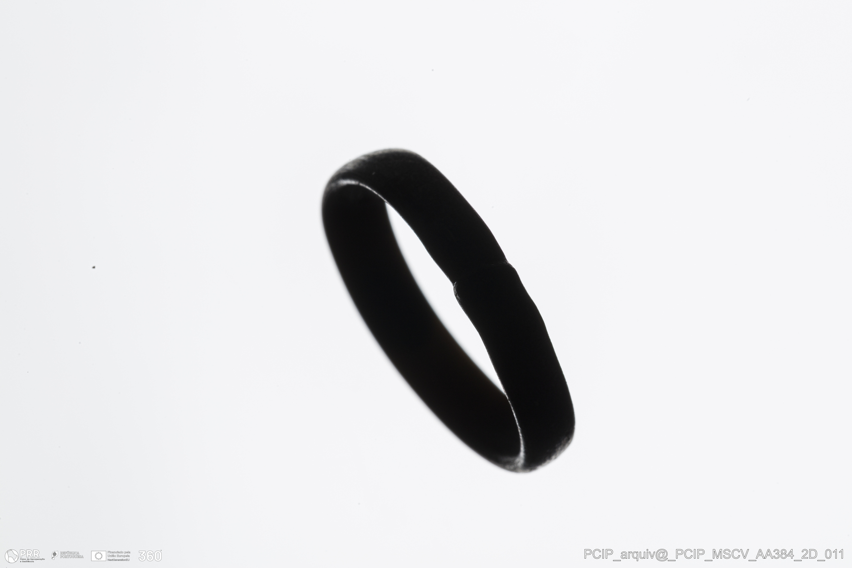 Matéria/Técnica: Vidro; Cronologia: Século XVI- XVII; Autoria: Desconhecida; Dimensões: Diâmetro máximo: 18mm; Altura: 4mm; Espessura: 1mm.
