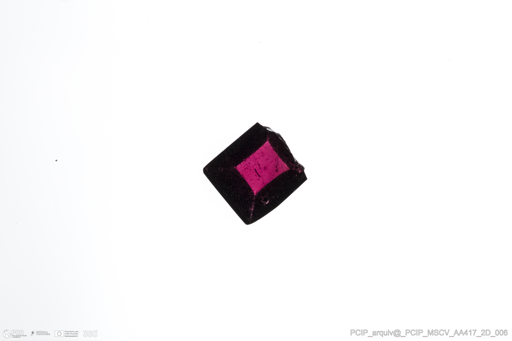 Matéria/Técnica: pedra lapidada (?); Cronologia: Século XVI- XVII; Autoria: Desconhecida; Dimensões: Comprimento: 6mm; Largura: 6mm; Espessura: 3mm.