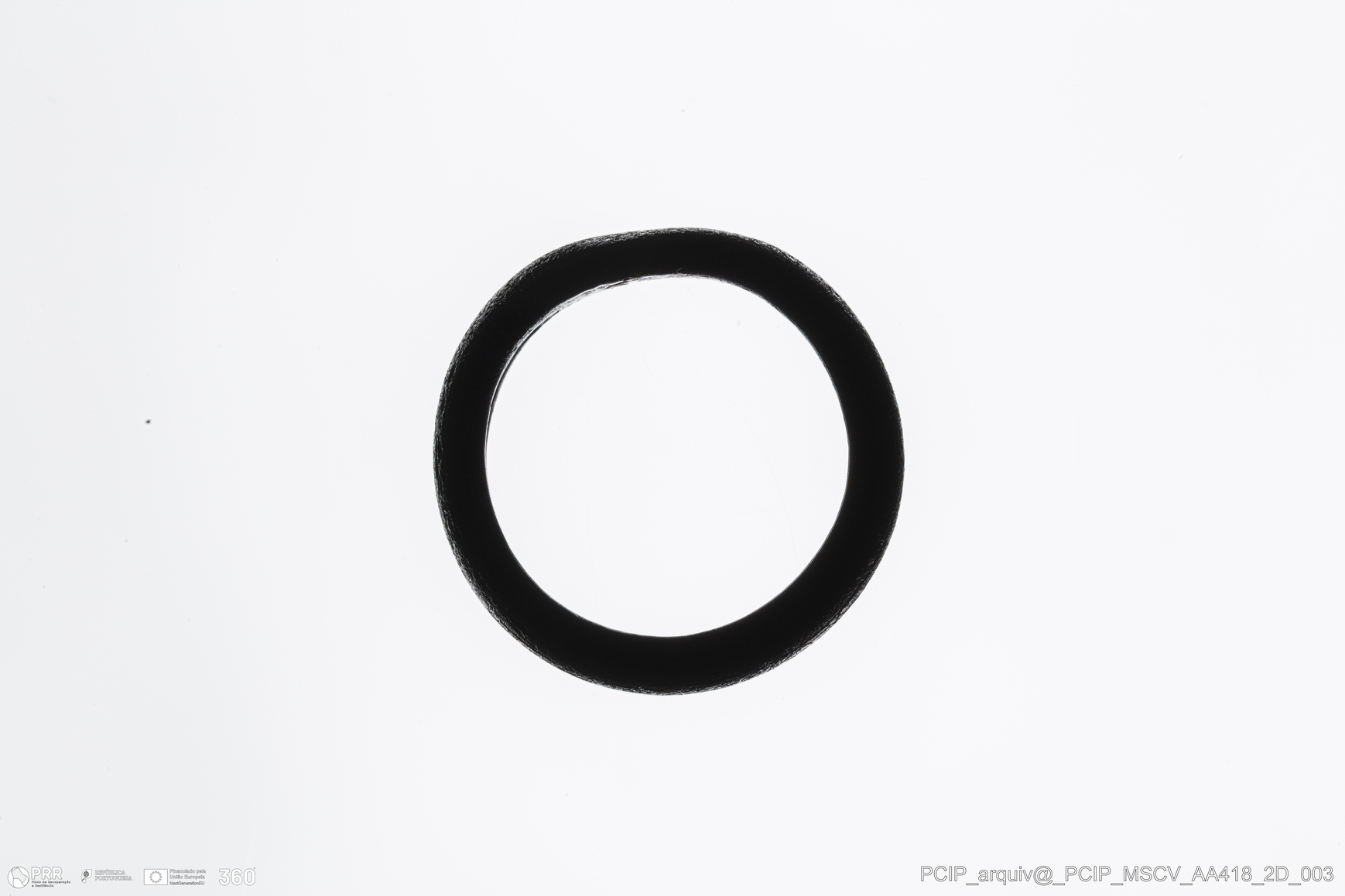 Matéria/Técnica: Vidro; Cronologia: Século XVI- XVII; Autoria: Desconhecida; Dimensões: Diâmetro máximo: 17mm; Altura: 5mm; Espessura: 2mm.