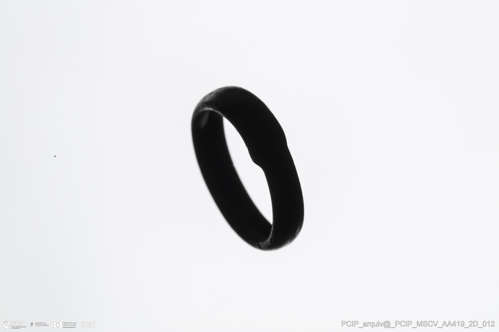 Matéria/Técnica: Vidro; Cronologia: Século XVI- XVII; Autoria: Desconhecida; Dimensões: Diâmetro máximo: 15mm; Altura: 3mm; Espessura: 1mm.