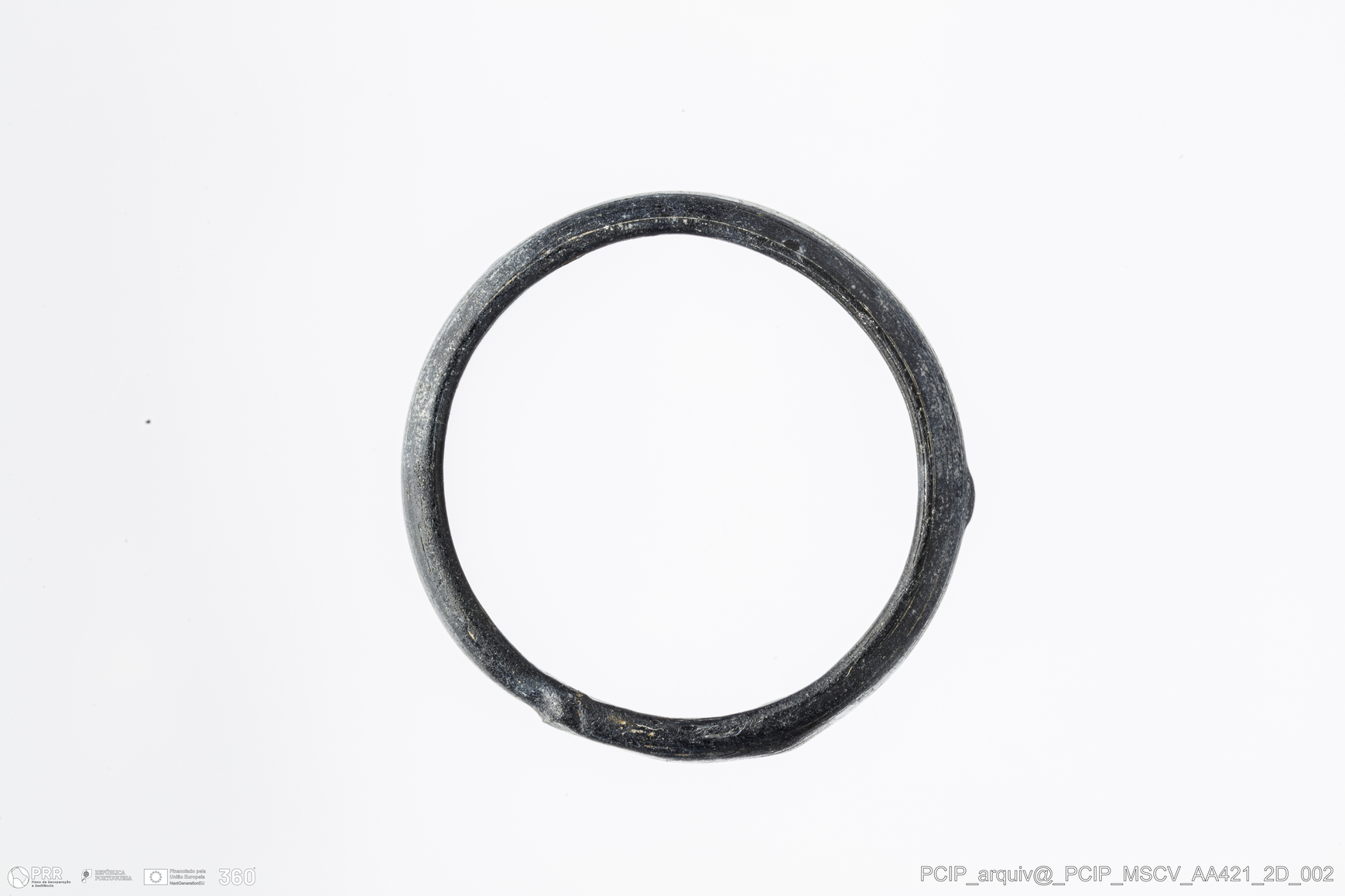 Matéria/Técnica: Vidro; Cronologia: Século XVI- XVII; Autoria: Desconhecida; Dimensões: Diâmetro máximo: 22mm; Altura: 5mm; Espessura: 2mm.
