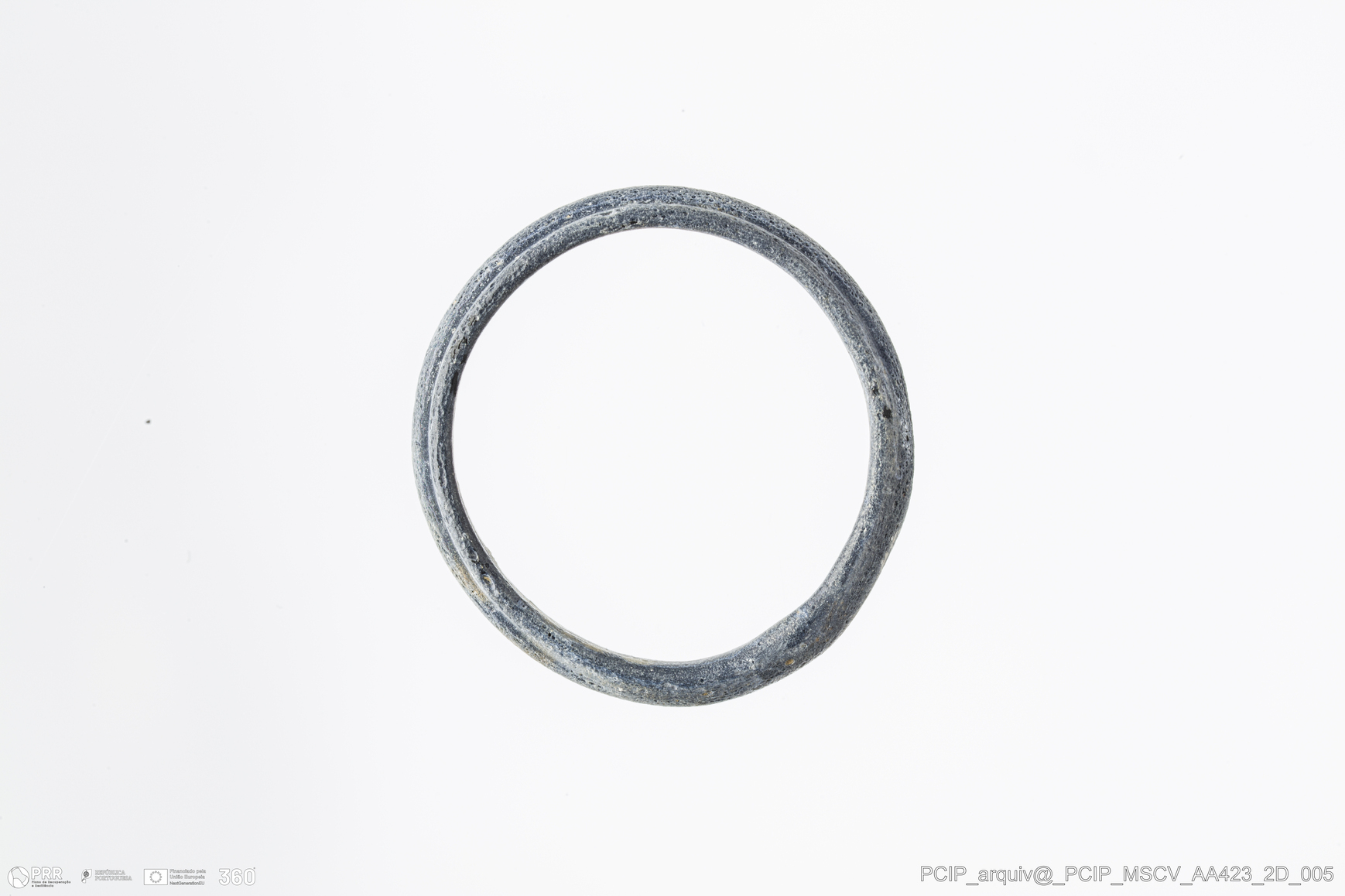 Matéria/Técnica: Vidro; Cronologia: Século XVI- XVII; Autoria: Desconhecida; Dimensões: Diâmetro máximo: 2mm; Altura: 5mm; Espessura: 2mm.