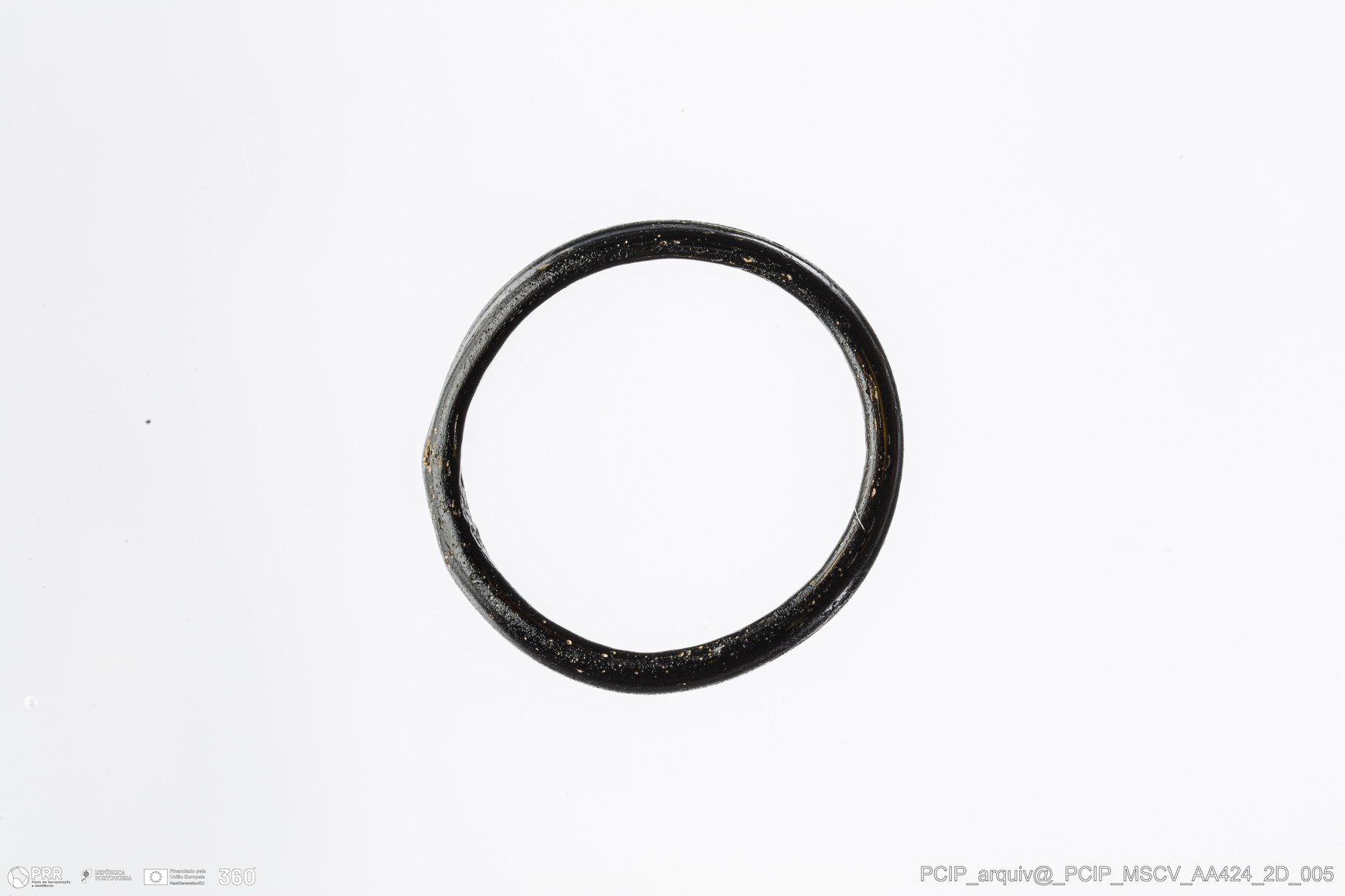 Matéria/Técnica: Vidro; Cronologia: Século XVI- XVII; Autoria: Desconhecida; Dimensões: Diâmetro máximo: 19mm; Altura: 4mm; Espessura: 1mm.