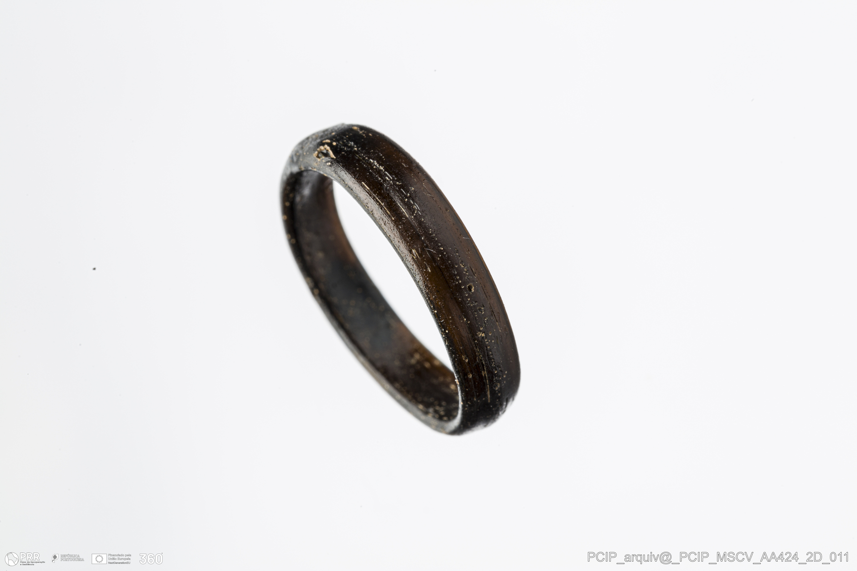 Matéria/Técnica: Vidro; Cronologia: Século XVI- XVII; Autoria: Desconhecida; Dimensões: Diâmetro máximo: 19mm; Altura: 4mm; Espessura: 1mm.