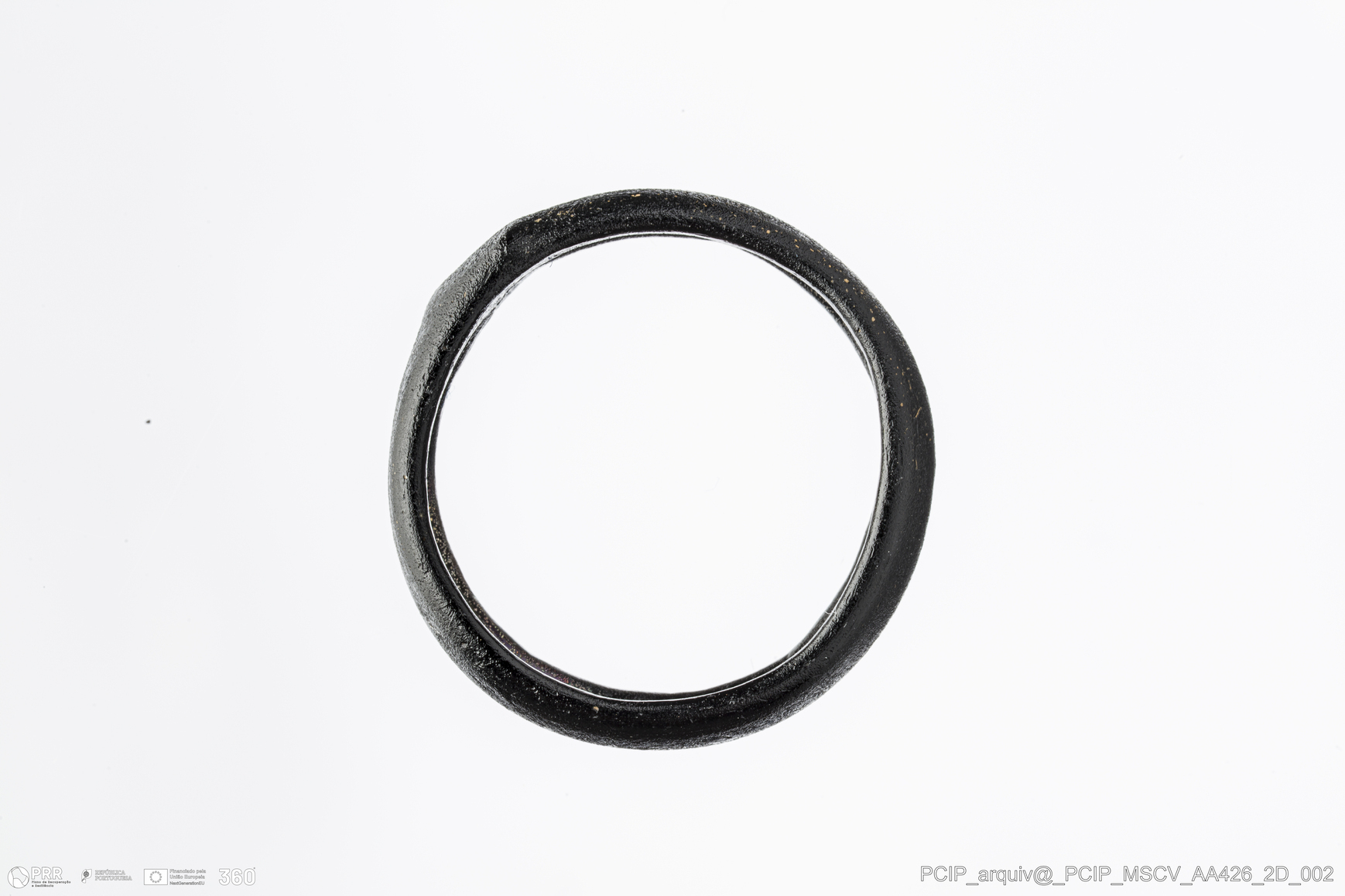 Matéria/Técnica: Vidro; Cronologia: Século XVI- XVII; Autoria: Desconhecida; Dimensões: Diâmetro máximo: 24mm; Altura: 5mm; Espessura: 2mm.