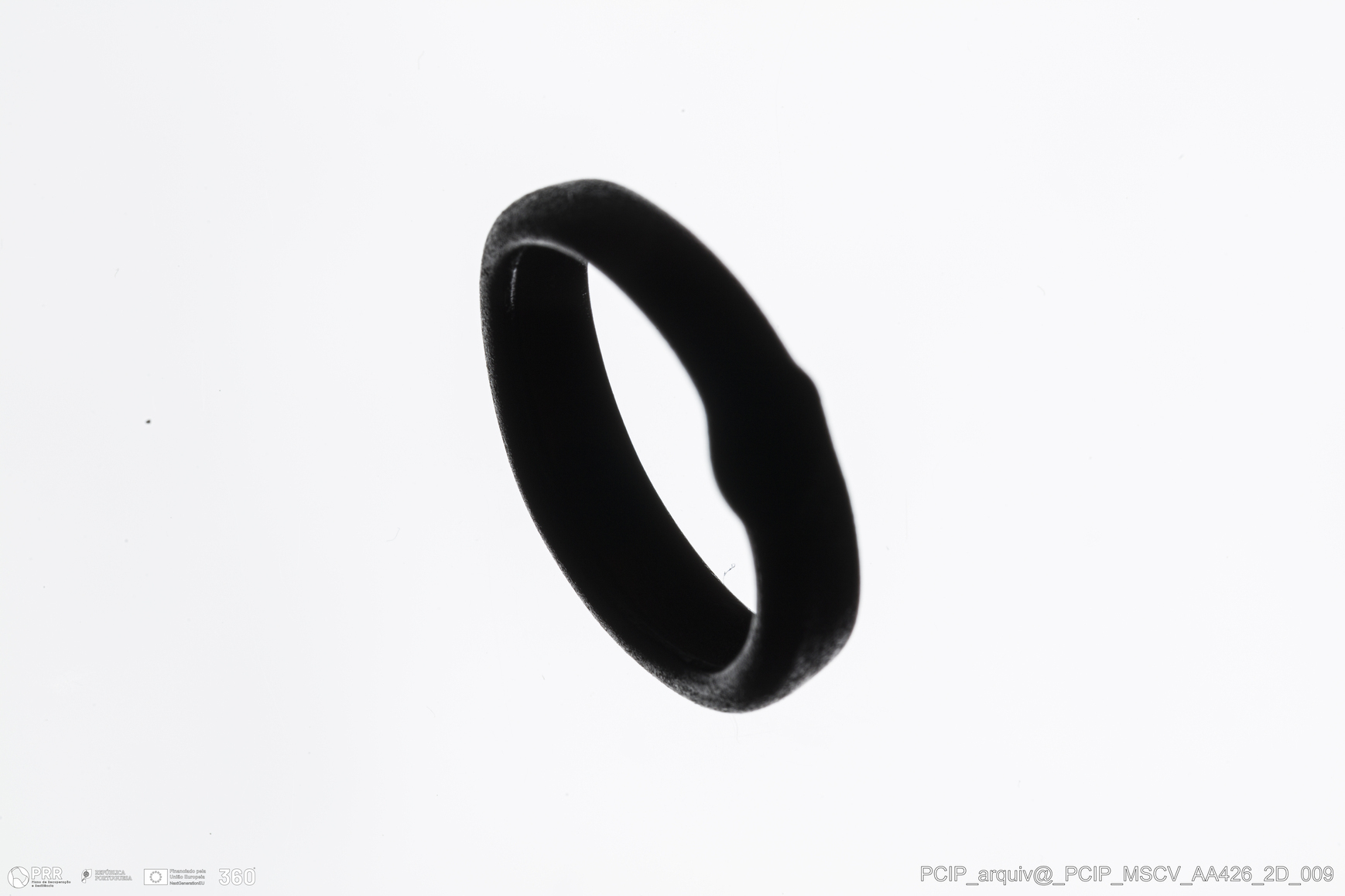 Matéria/Técnica: Vidro; Cronologia: Século XVI- XVII; Autoria: Desconhecida; Dimensões: Diâmetro máximo: 24mm; Altura: 5mm; Espessura: 2mm.