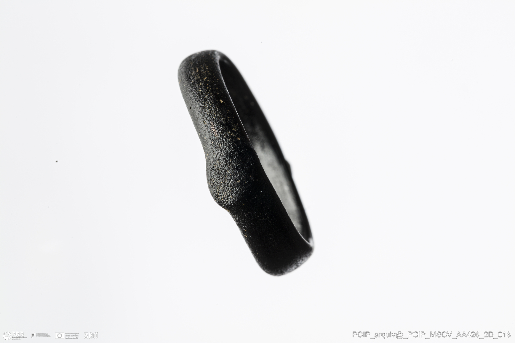 Matéria/Técnica: Vidro; Cronologia: Século XVI- XVII; Autoria: Desconhecida; Dimensões: Diâmetro máximo: 24mm; Altura: 5mm; Espessura: 2mm.