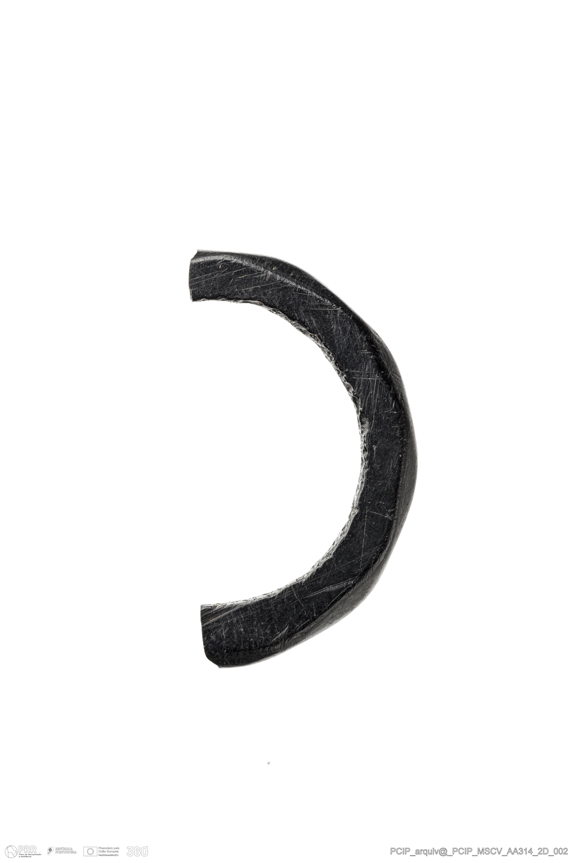 Matéria/Técnica: Azeviche; Cronologia: Século XVI- XVII; Autoria: Desconhecida; Dimensões: Diâmetro máximo: 25mm Altura máxima: 5mm Espessura máxima: 3mm.