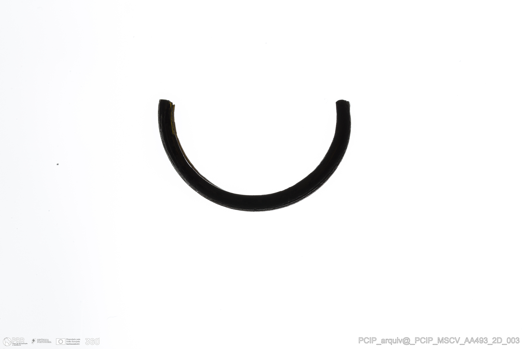 Matéria/Técnica: Vidro; Cronologia: Século XVI- XVII; Autoria: Desconhecida; Dimensões: Diâmetro máximo: 17mm; Altura: 4mm; Espessura: 1mm.