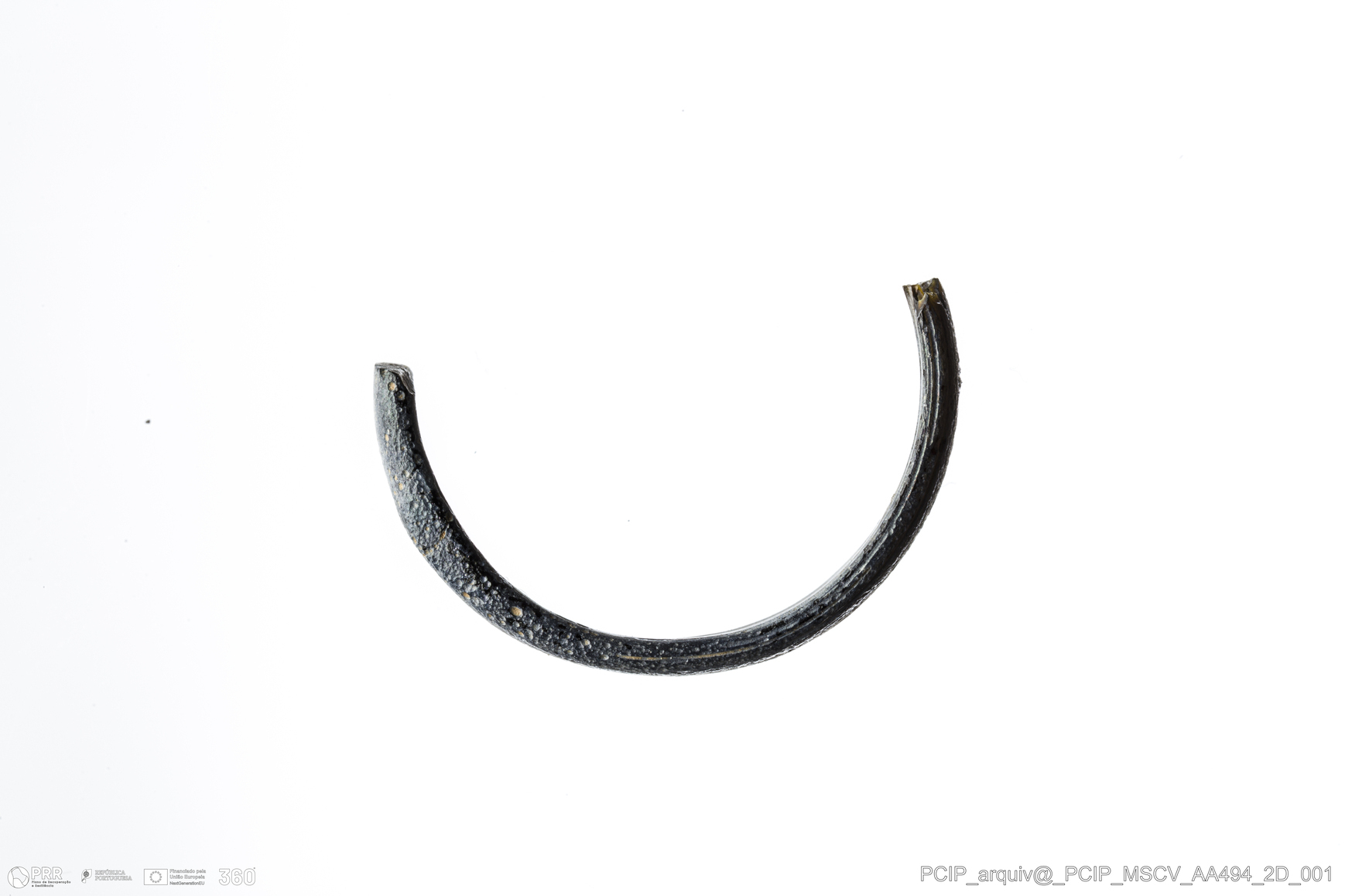 Matéria/Técnica: Vidro; Cronologia: Século XVI- XVII; Autoria: Desconhecida; Dimensões: Diâmetro máximo: 19mm; Altura: 4mm; Espessura: 1mm.