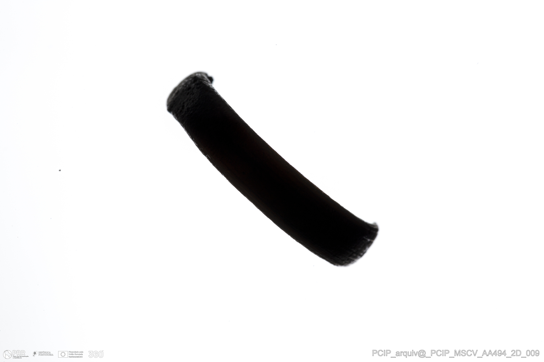 Matéria/Técnica: Vidro; Cronologia: Século XVI- XVII; Autoria: Desconhecida; Dimensões: Diâmetro máximo: 19mm; Altura: 4mm; Espessura: 1mm.