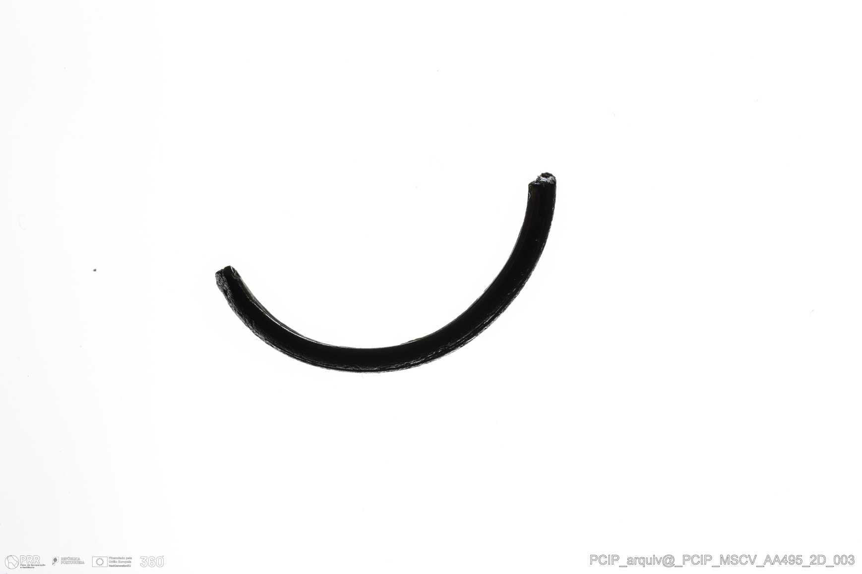 Matéria/Técnica: Vidro; Cronologia: Século XVI- XVII; Autoria: Desconhecida; Dimensões: Diâmetro máximo: 21mm; Altura: 4mm; Espessura: 1mm.