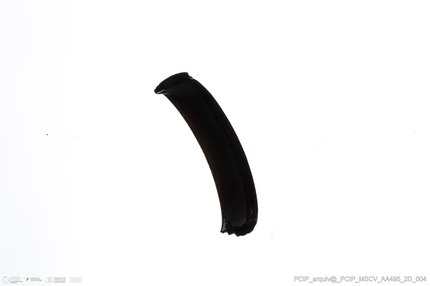 Matéria/Técnica: Vidro; Cronologia: Século XVI- XVII; Autoria: Desconhecida; Dimensões: Diâmetro máximo: 21mm; Altura: 4mm; Espessura: 1mm.