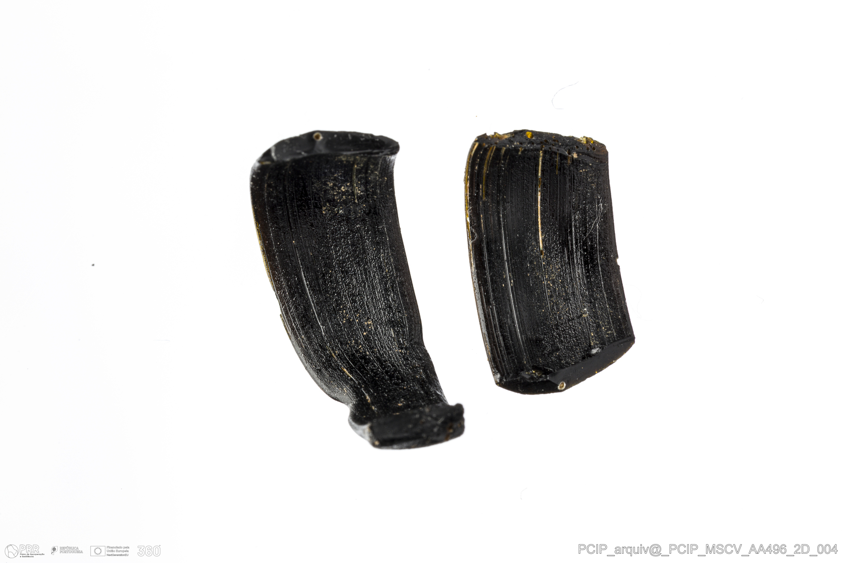 Matéria/Técnica: Vidro; Cronologia: Século XVI- XVII; Autoria: Desconhecida; Dimensões: Diâmetro máximo: 20mm; Altura: 9mm; Espessura: 2mm.