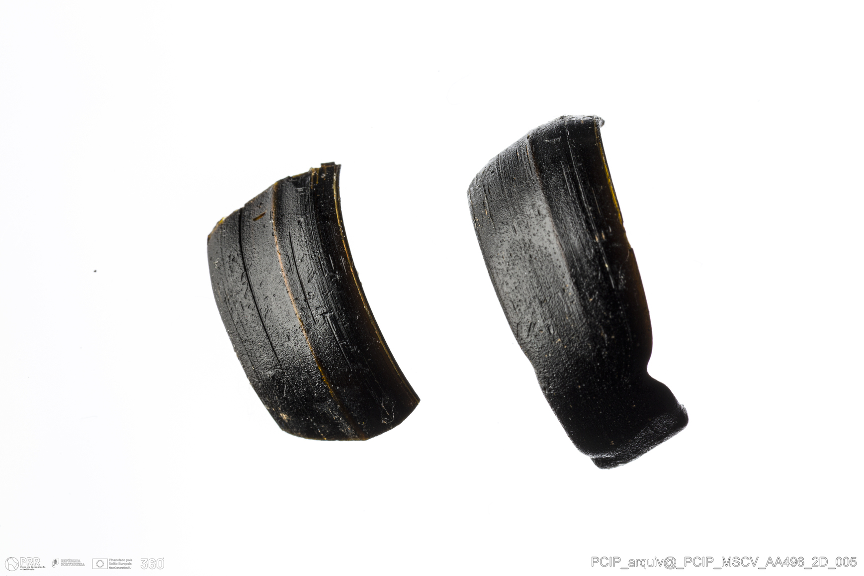 Matéria/Técnica: Vidro; Cronologia: Século XVI- XVII; Autoria: Desconhecida; Dimensões: Diâmetro máximo: 20mm; Altura: 9mm; Espessura: 2mm.